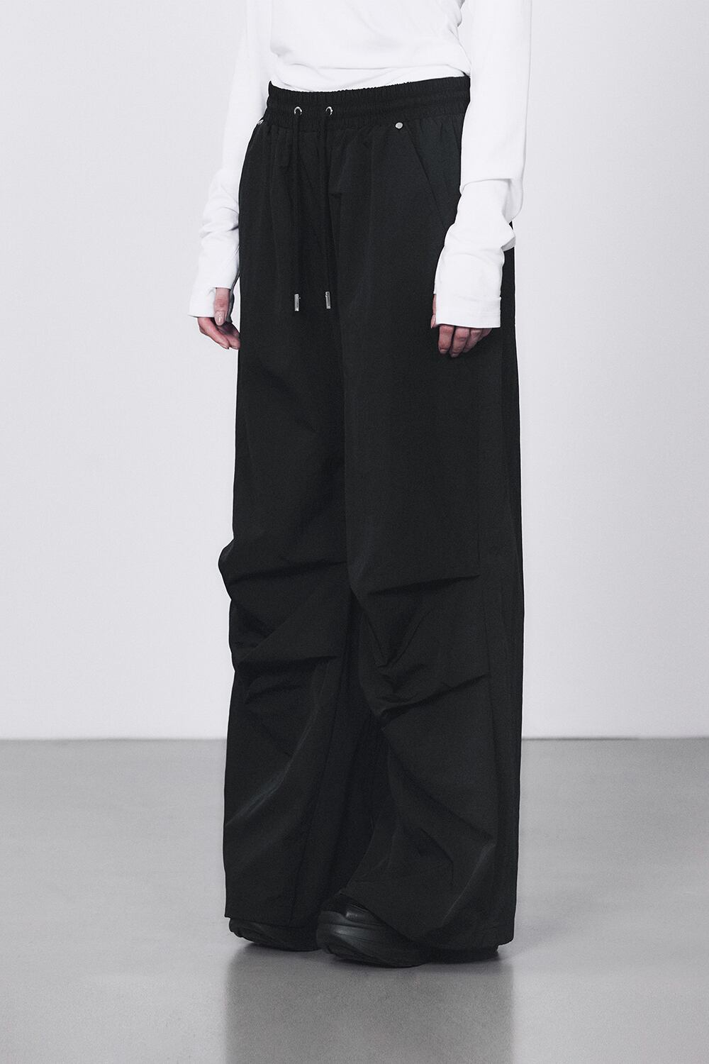[TREEMINGBIRD] Nylon Banding Parachute Pants [ Black ]