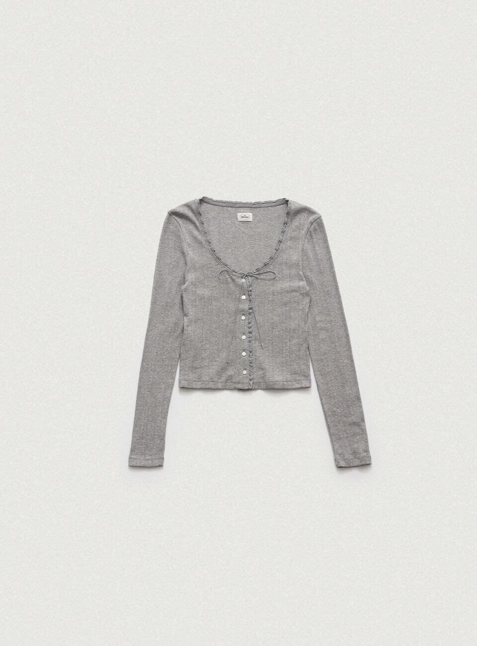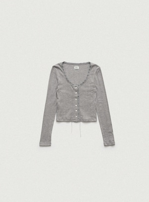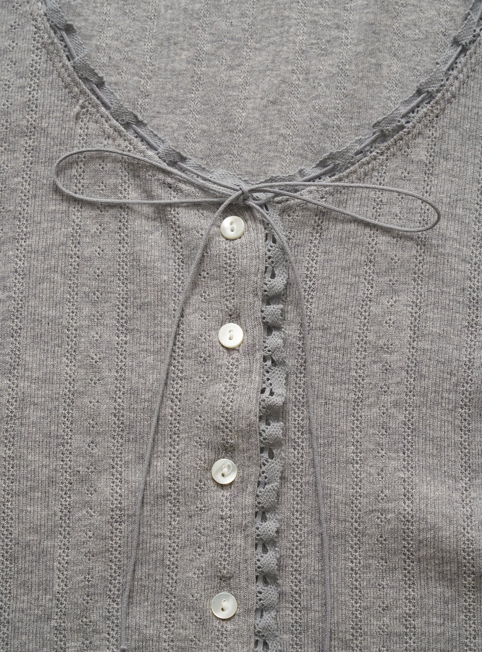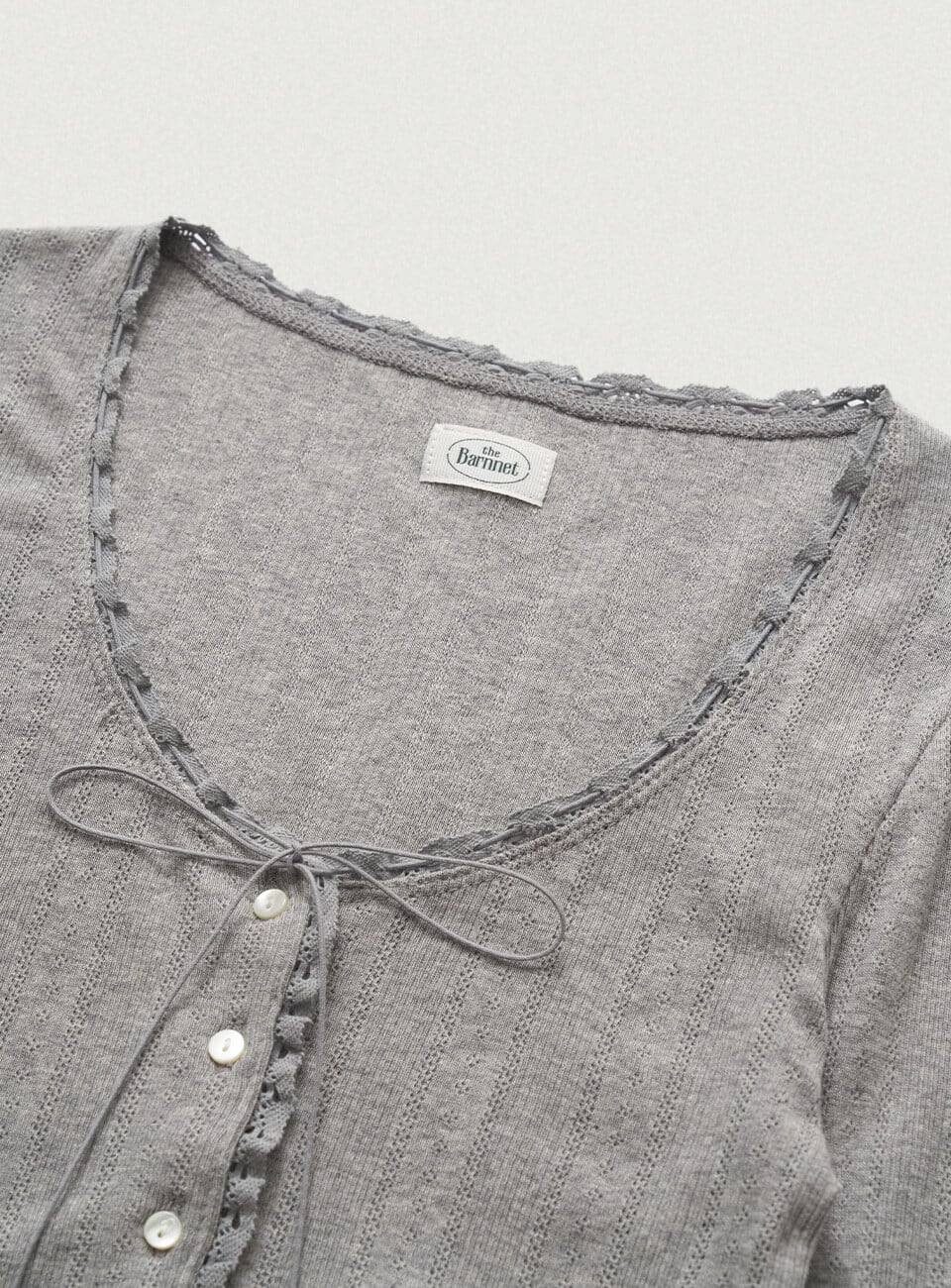 [The Barnnet] Ravioli Lace-Trim Button-Up Top_Grey