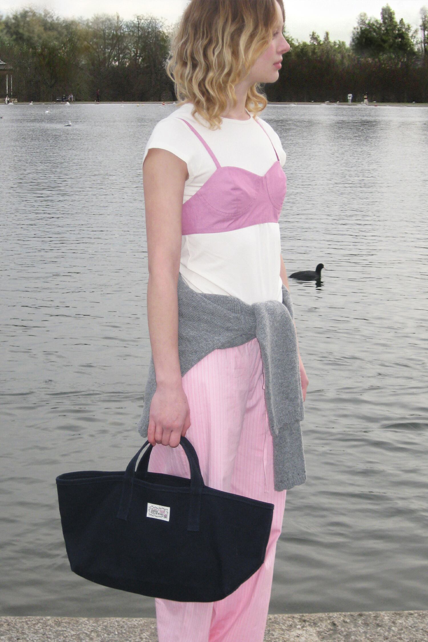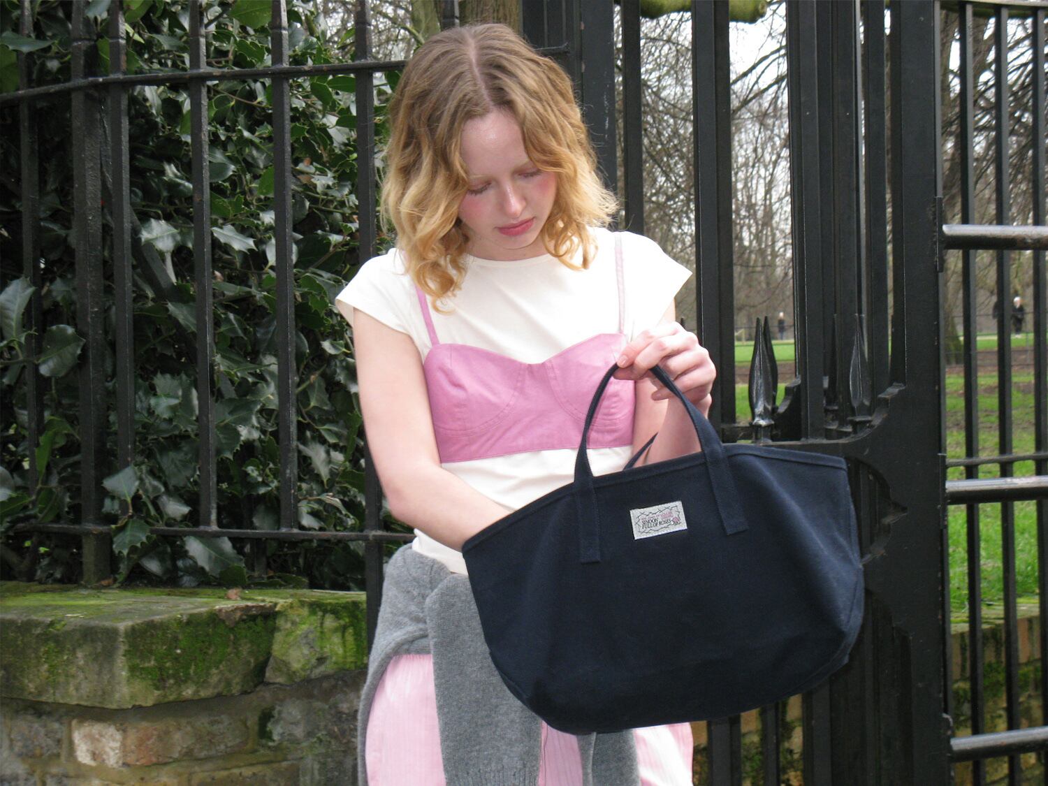 [SINOON] Rose Label Point Tote Bag (Navy)