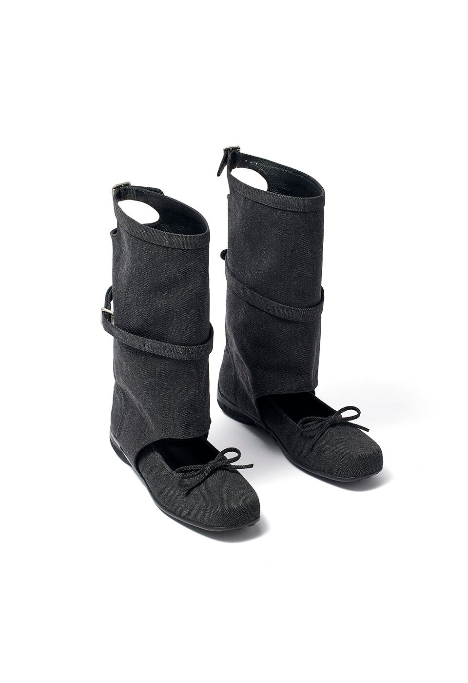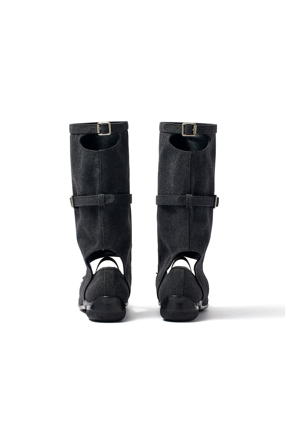 [OPEN YY] BALLET FLAT CUT-OUT BOOTS, BLACK