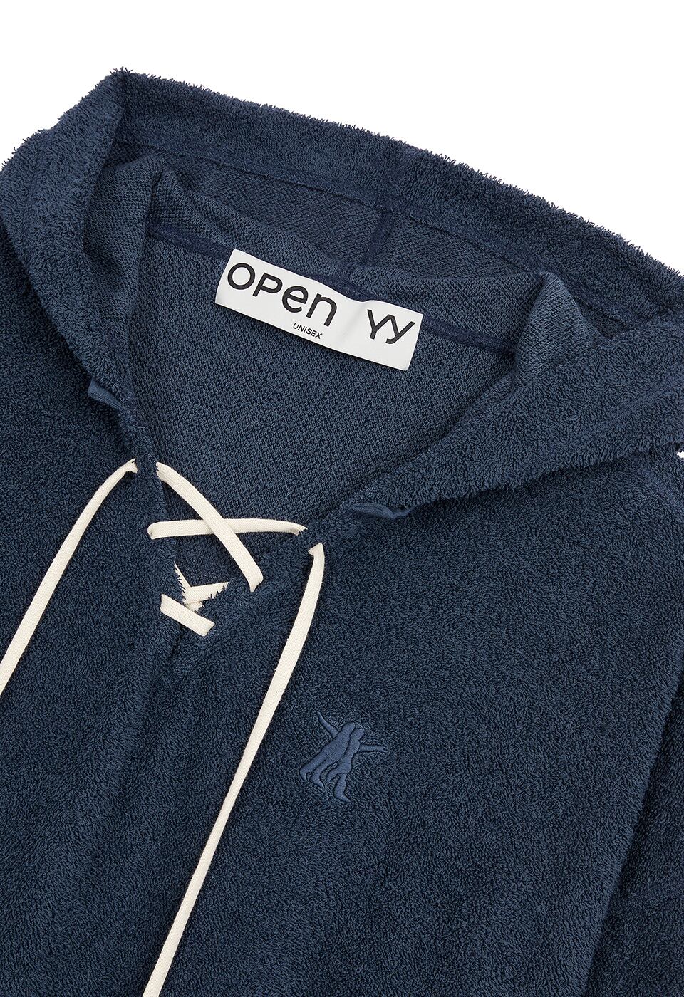 [OPEN YY] TERRY LACE-UP HOODIE, NAVY