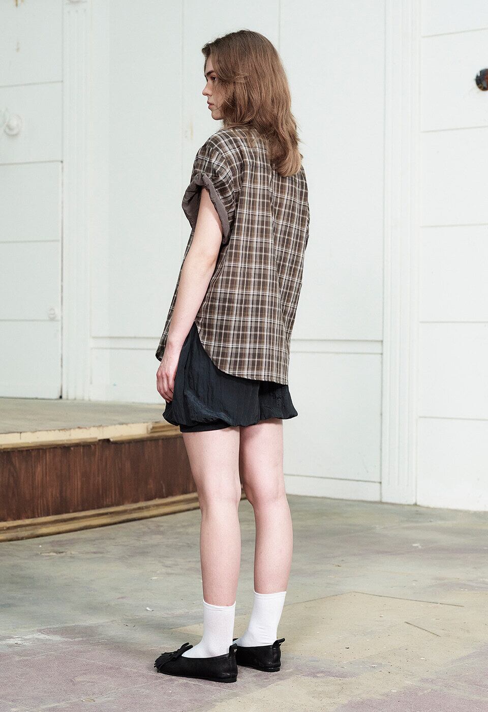 [OPEN YY] CRINKLED GATHER SHORTS, CHARCOAL
