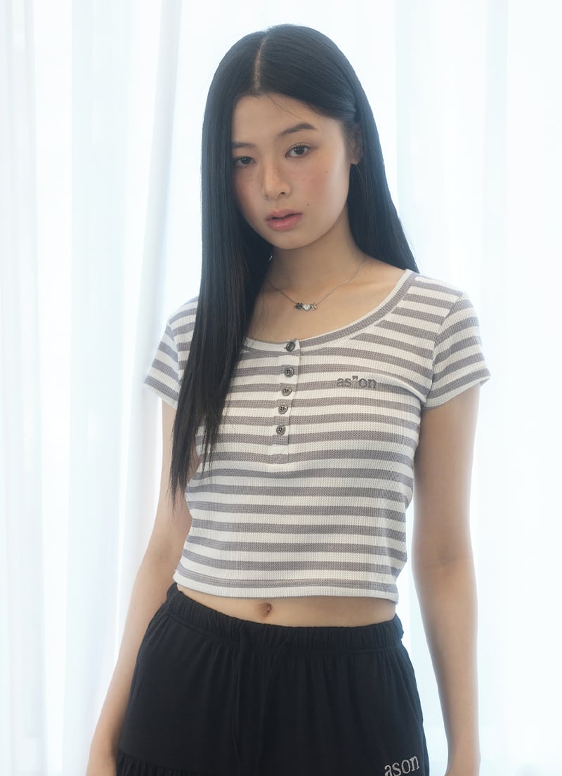 [AS"ON] COBY TEE / STRIPE GRAY 正規品 韓国ブランド 韓国通販 韓国代行 韓国ファッション as on ason エズオン アズオン 日本 店舗