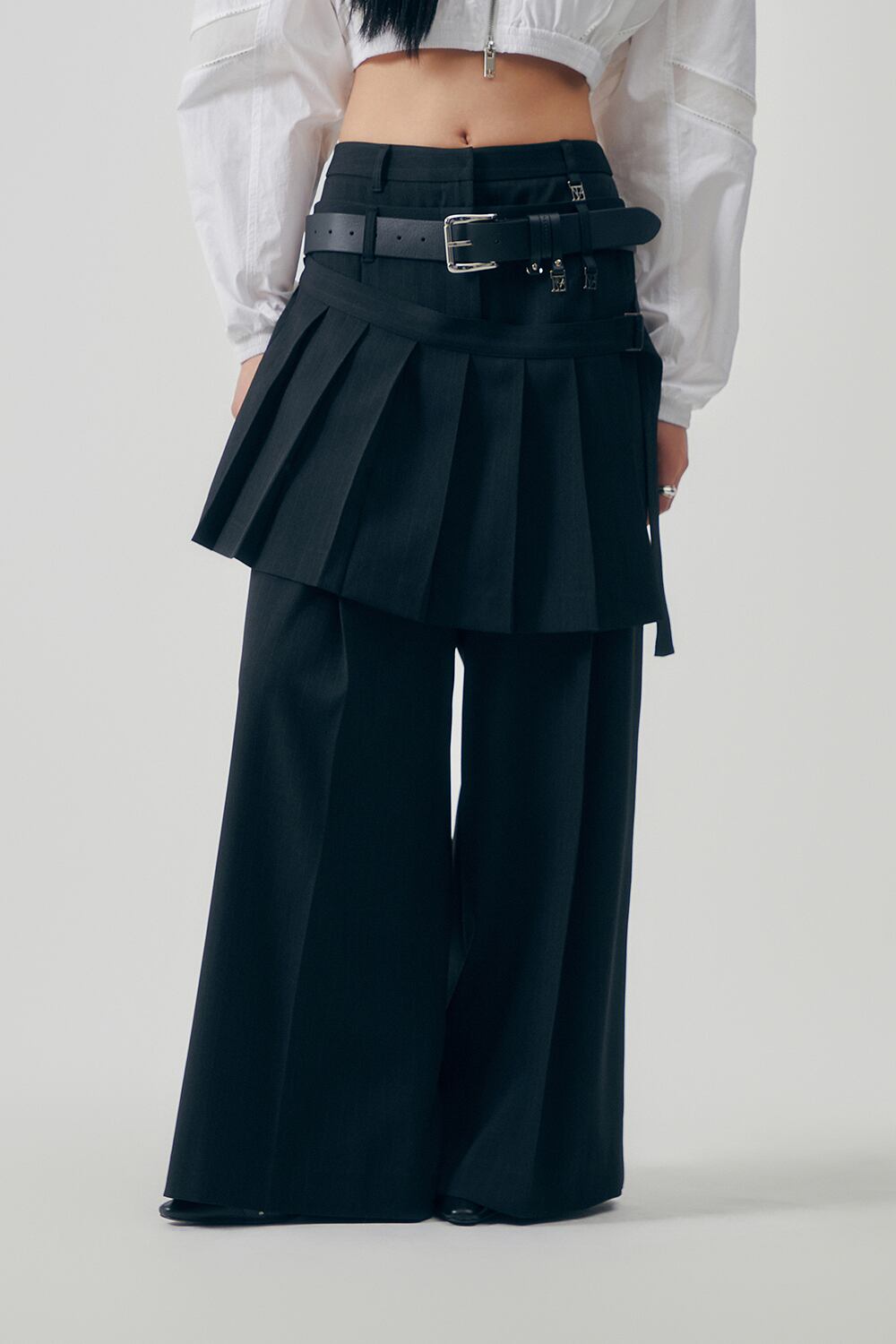 [TREEMINGBIRD] Flowing Pleated Layered Pants [ Black ]