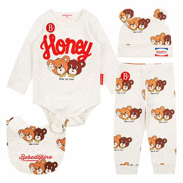 SUIT, BOTTOM, BONNET, BIBのセット商品になります。