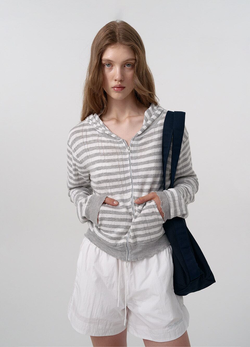 [The Barnnet] Cotton Eyelet Hooded Knit_Stripe