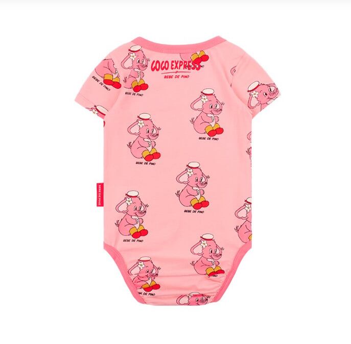 [BEBE DE PINO] All over pink elephant baby bodysuit set