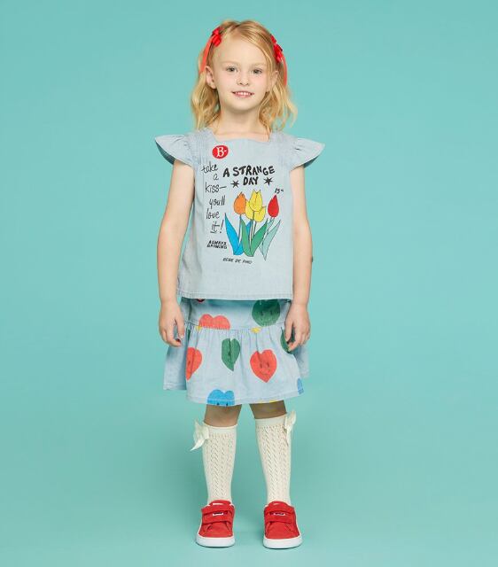 [BEBE DE PINO] Tulips cap sleeve denim blouse 正規品 韓国ブランド 韓国ファッション 韓国代行 韓国通販 ベベドピノ bebedepino 日本 店舗 韓国 子供服