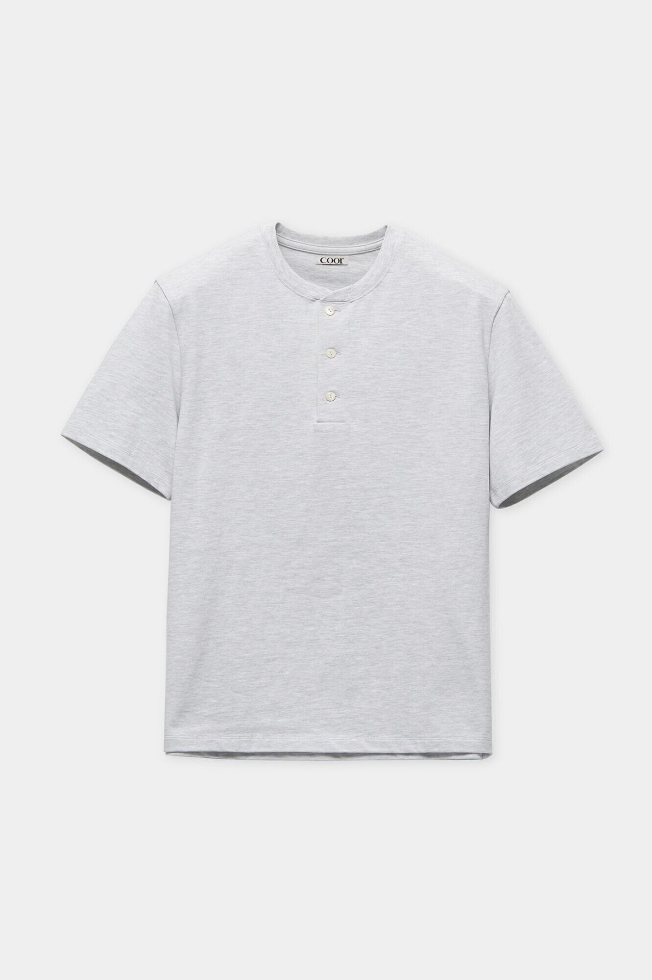 [COOR] Regular Fit Henley T-Shirt (Melange Grey)