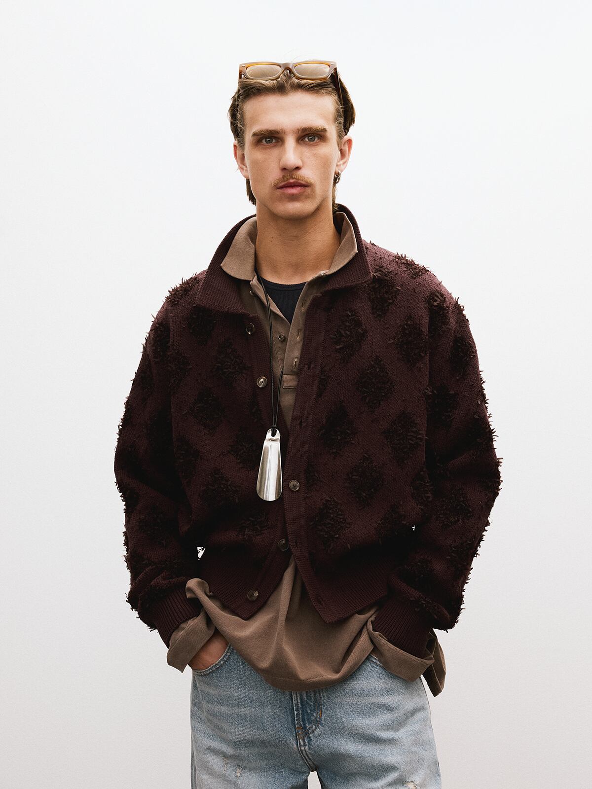 [RECTO][MEN] FRINGE JACQUARD KNIT CARDIGAN (VINTAGE BROWN) 正規品 韓国ブランド 韓国通販 韓国代行 韓国ファッション レクト 日本 店舗
