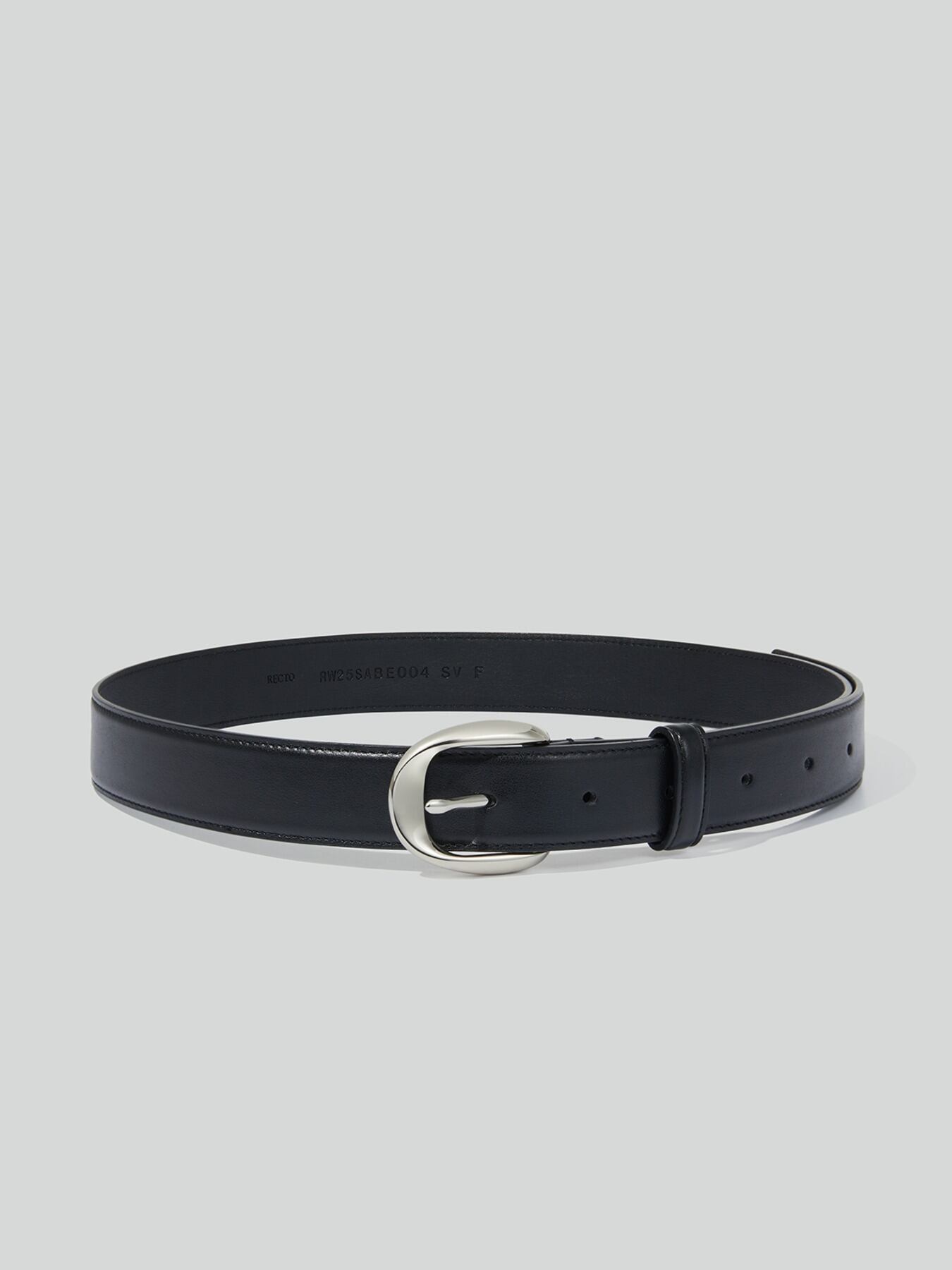 [RECTO] SIGNATURE ROUND BUCKLE BELT (SILVER)