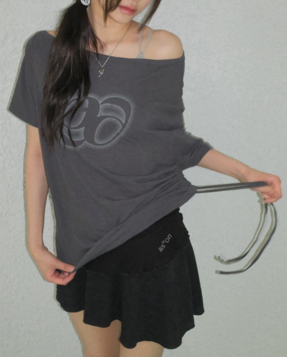 [as”on] KIKI BOXY SHIRRING TEE / CHARCOAL 正規品 韓国ブランド 韓国通販 韓国代行 韓国ファッション as on ason エズオン アズオン