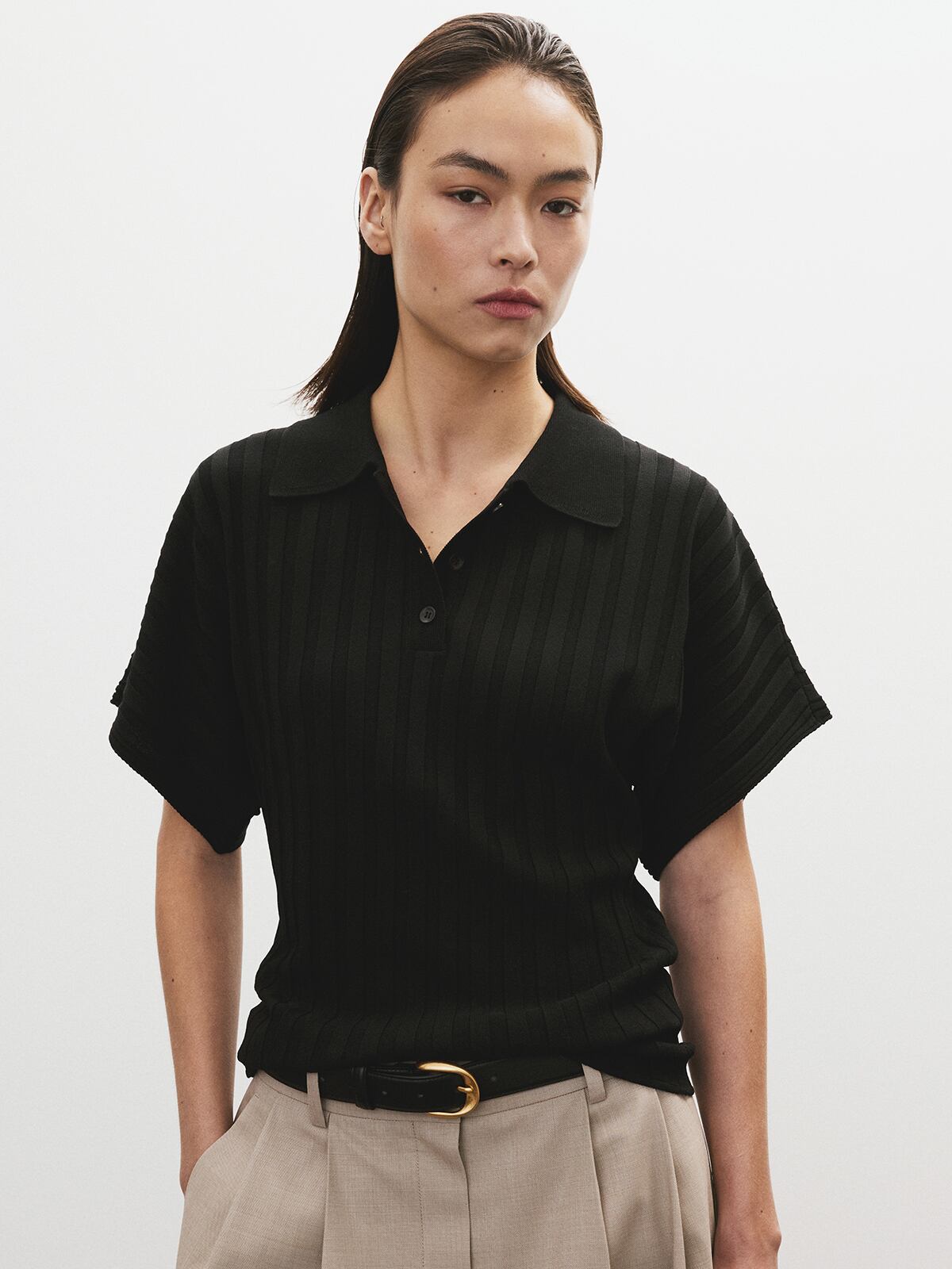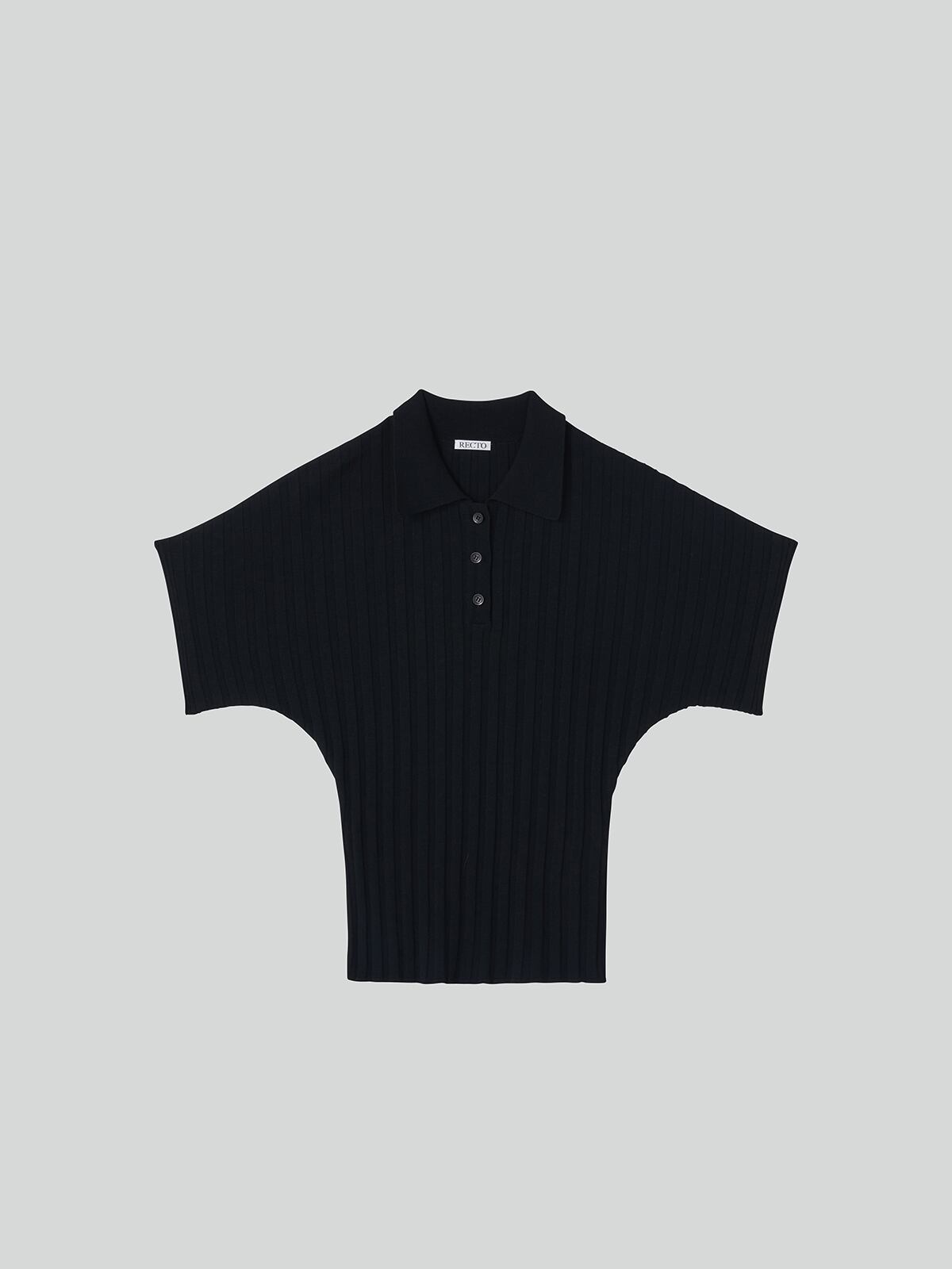 [RECTO] DOLMAN SLEEVES KNIT POLO TOP (BLACK)