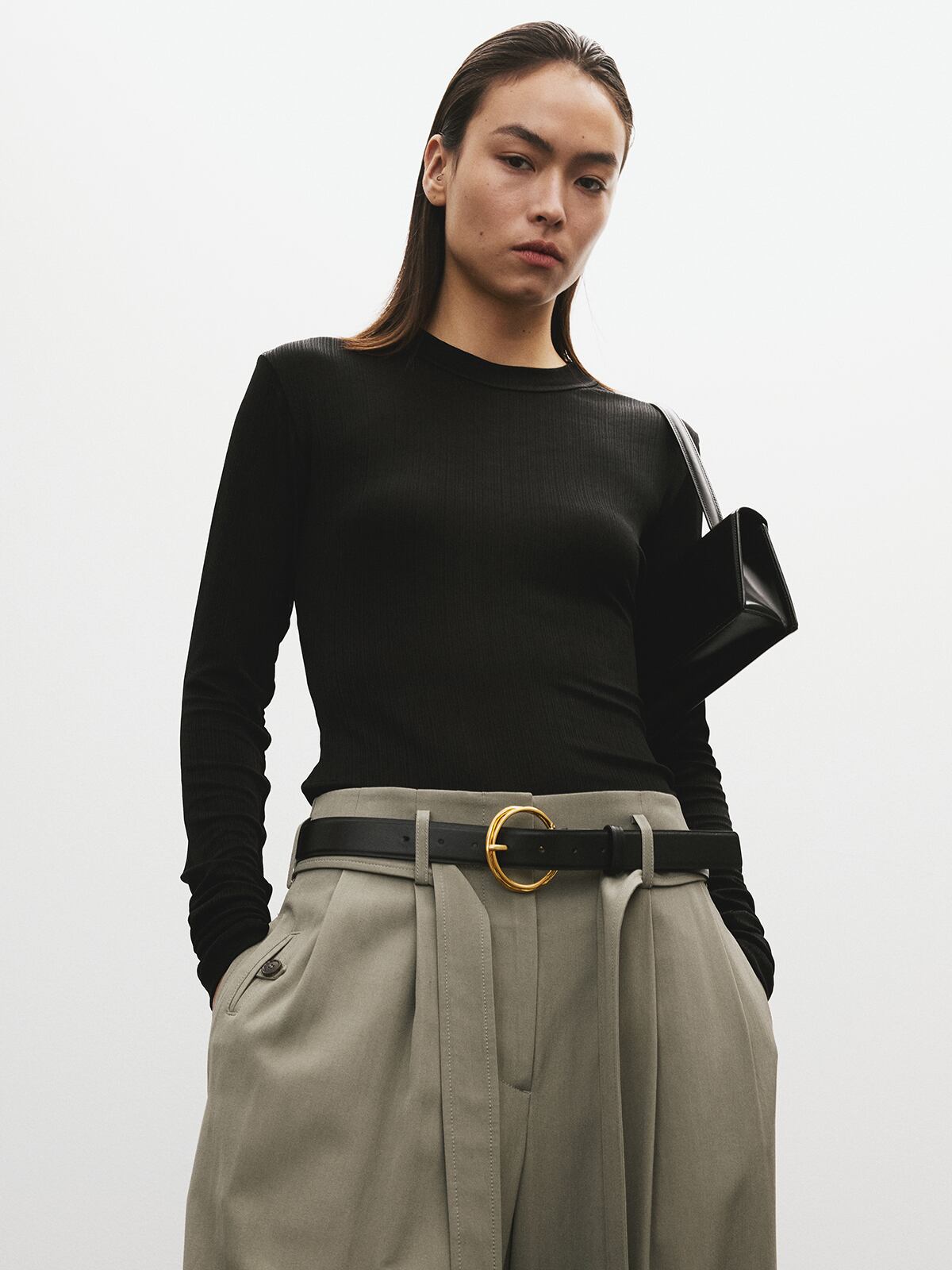 [RECTO] LONG SLEEVES SHEER JERSEY TOP (BLACK)