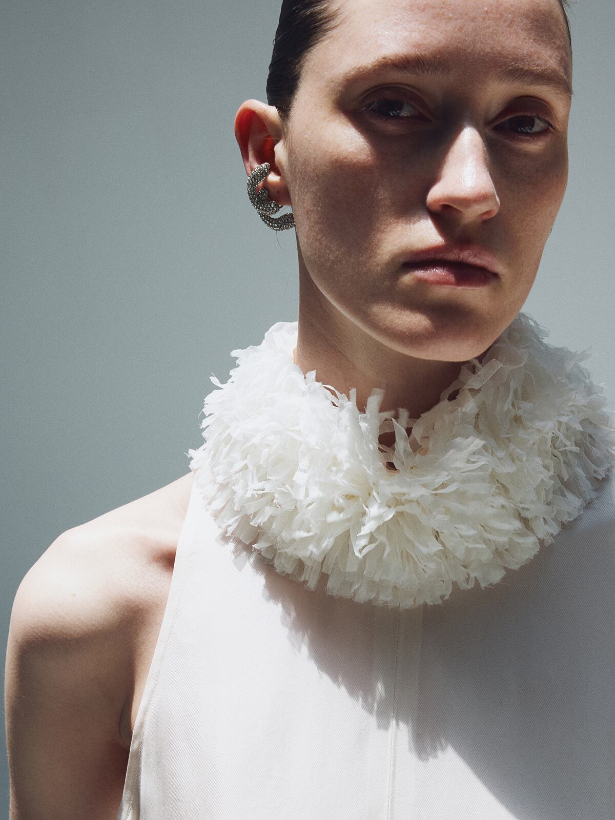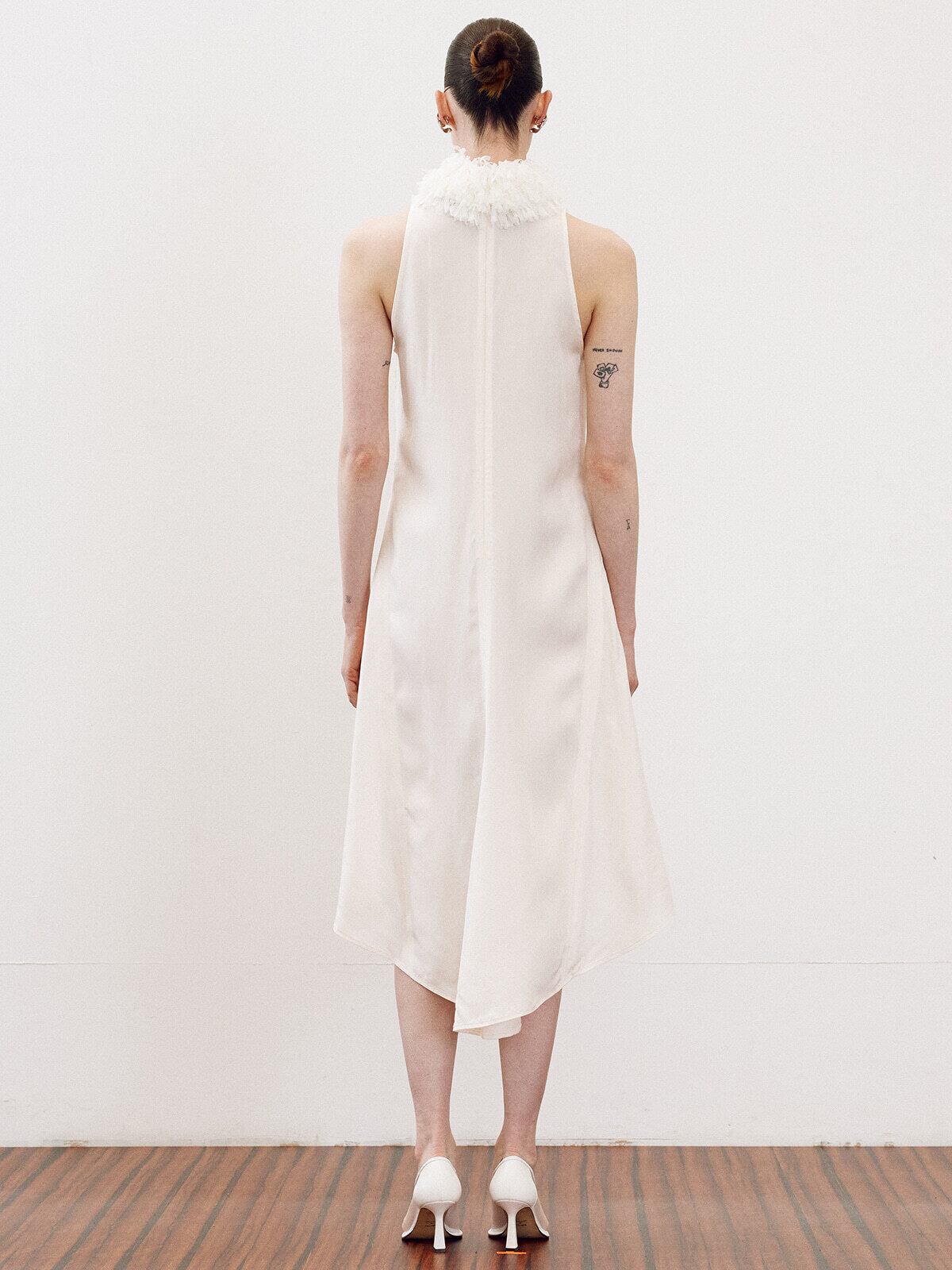 [RECTO] FRINGE COLLAR HALTER NECK DRESS (IVORY)
