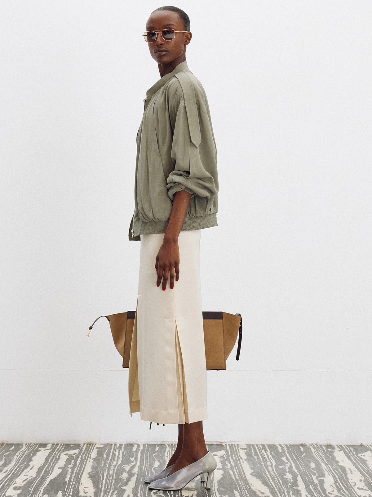 [RECTO] FRONT SLIT LONG SKIRT (CREAM)