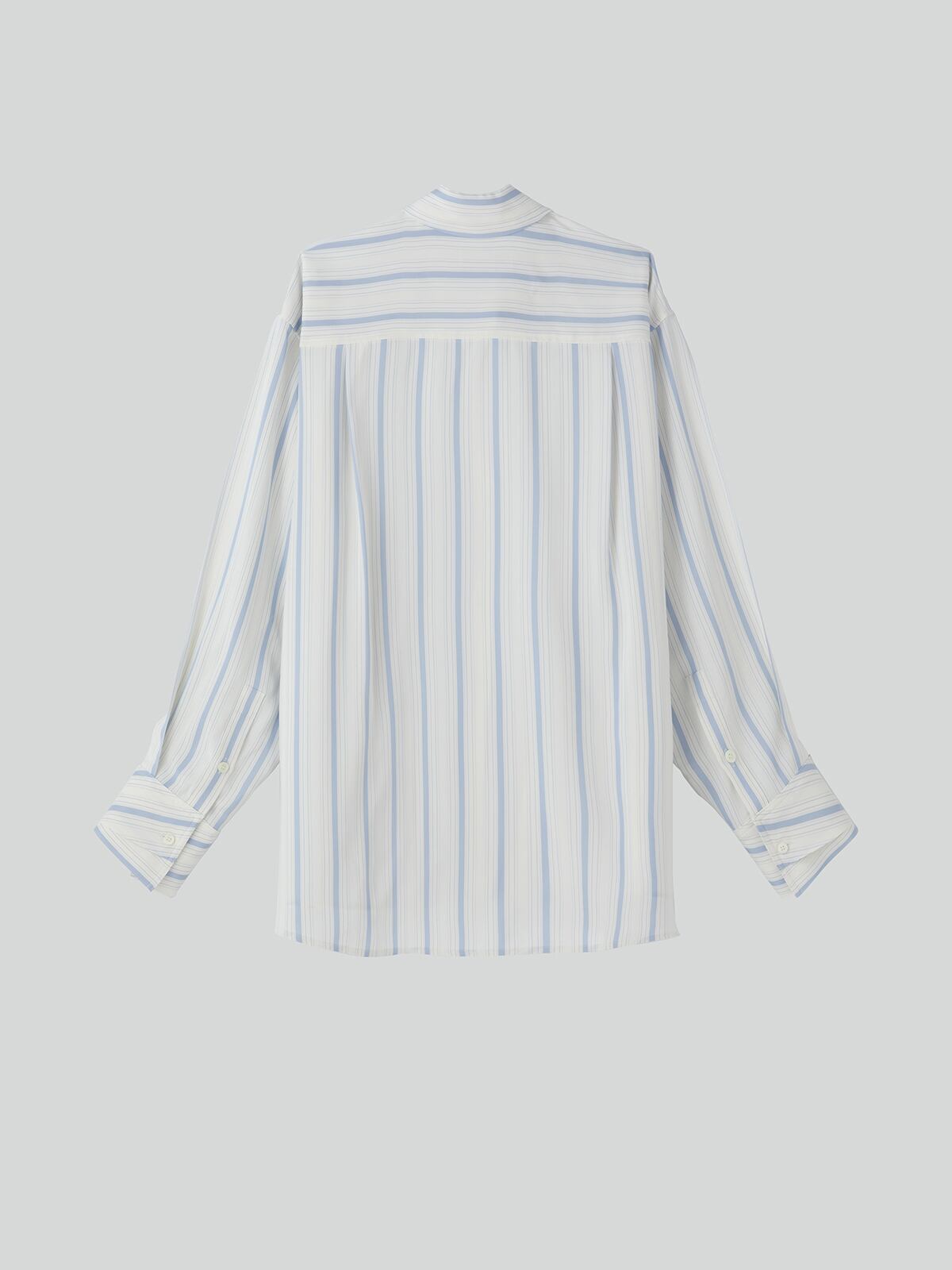 [RECTO] DOUBLE LAYER CUFFS STRIPE SHIRT (SKY BLUE)
