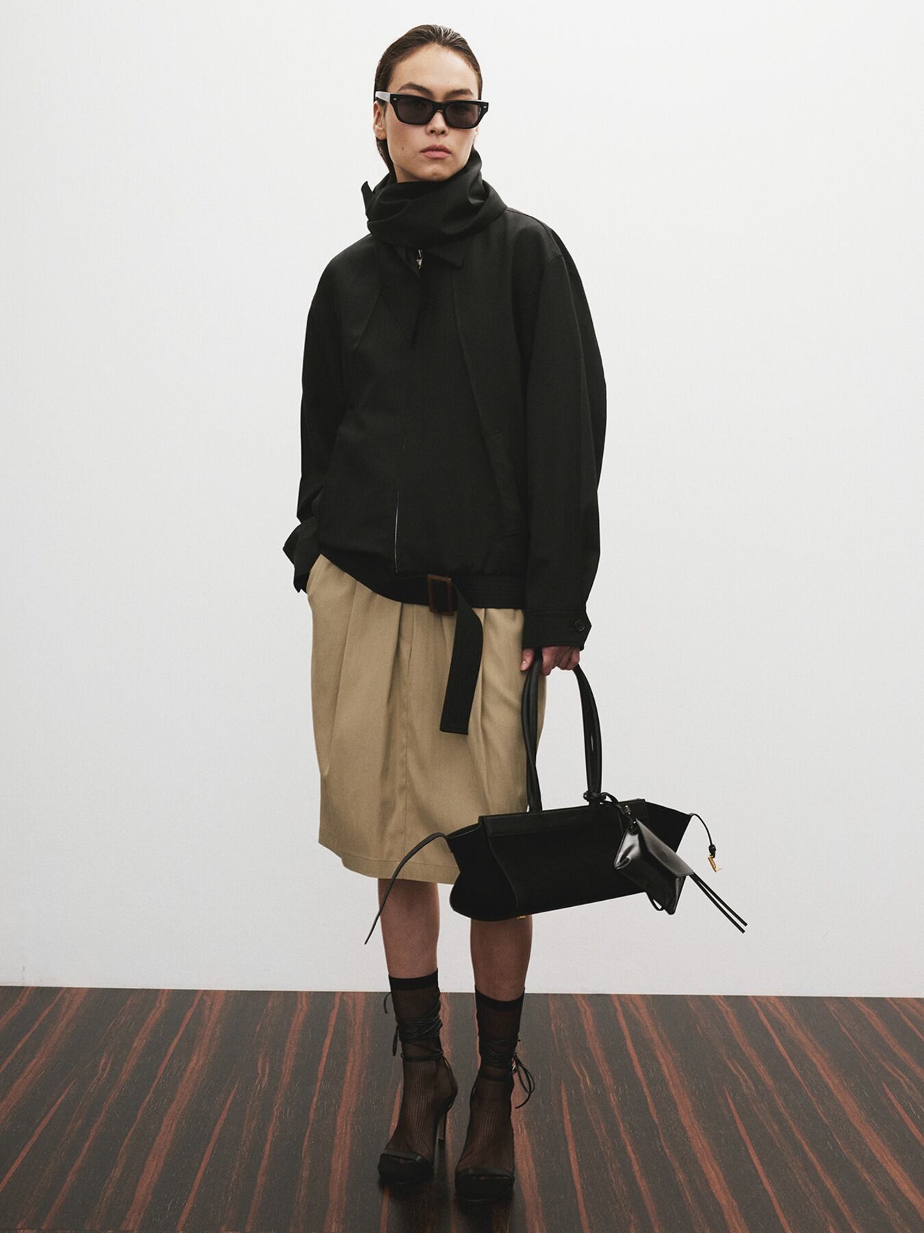 [RECTO] SCARF DETAIL HARRINGTON JUMPER (BLACK)