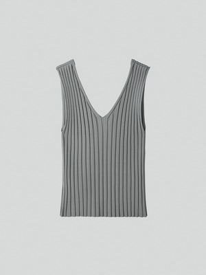 [RECTO] V-NECK RIBBED KNIT TANK TOP (LIGHT GREY)