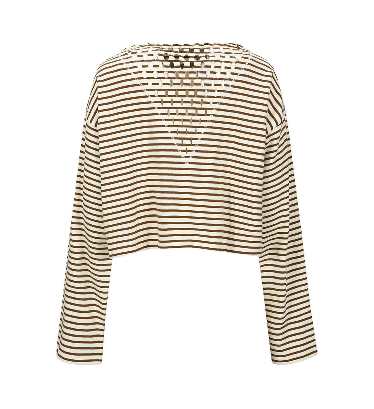 [YCH] PUNCHED BACK DETAIL STRIPE LONG SLEEVE (brown)