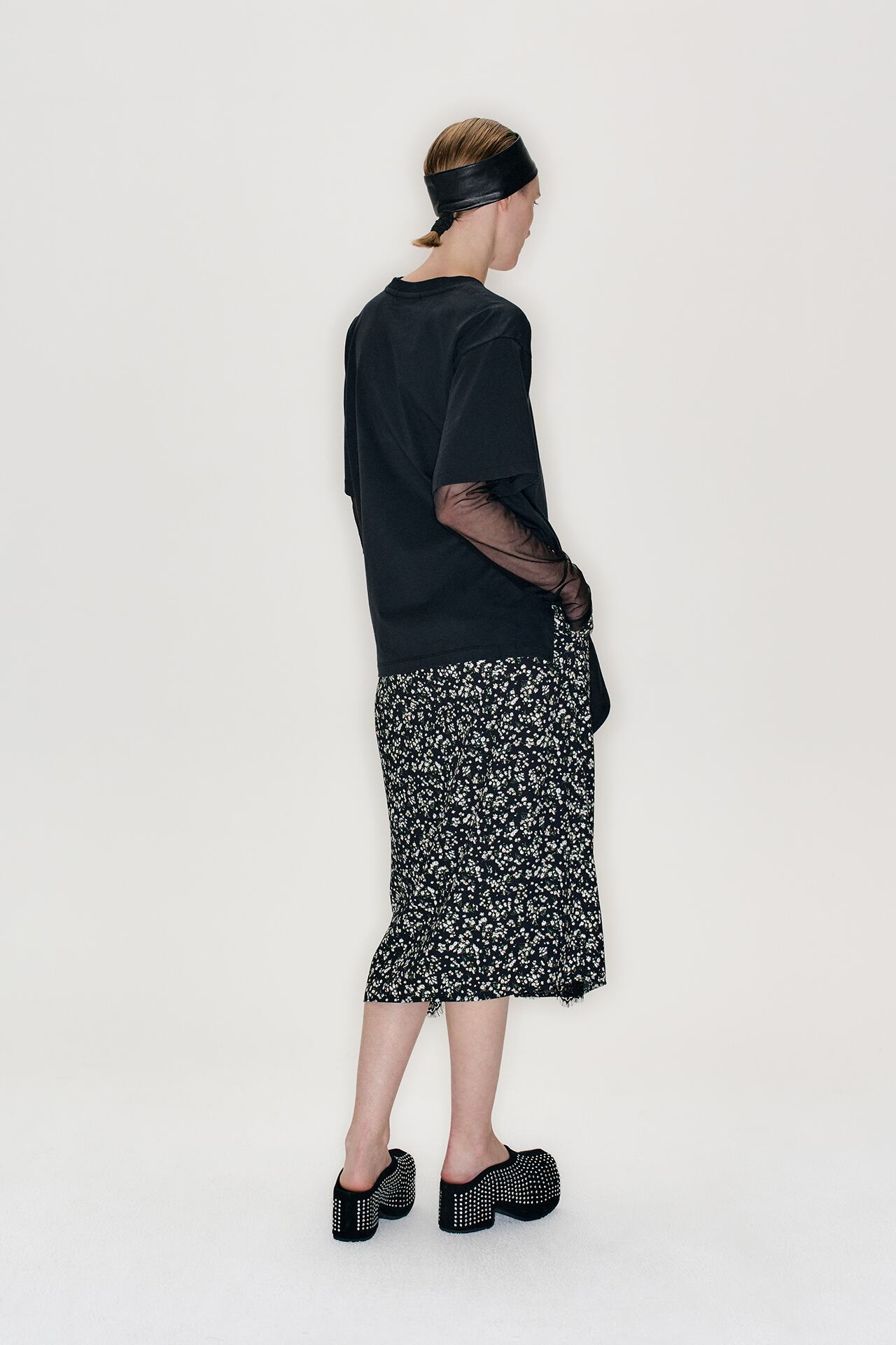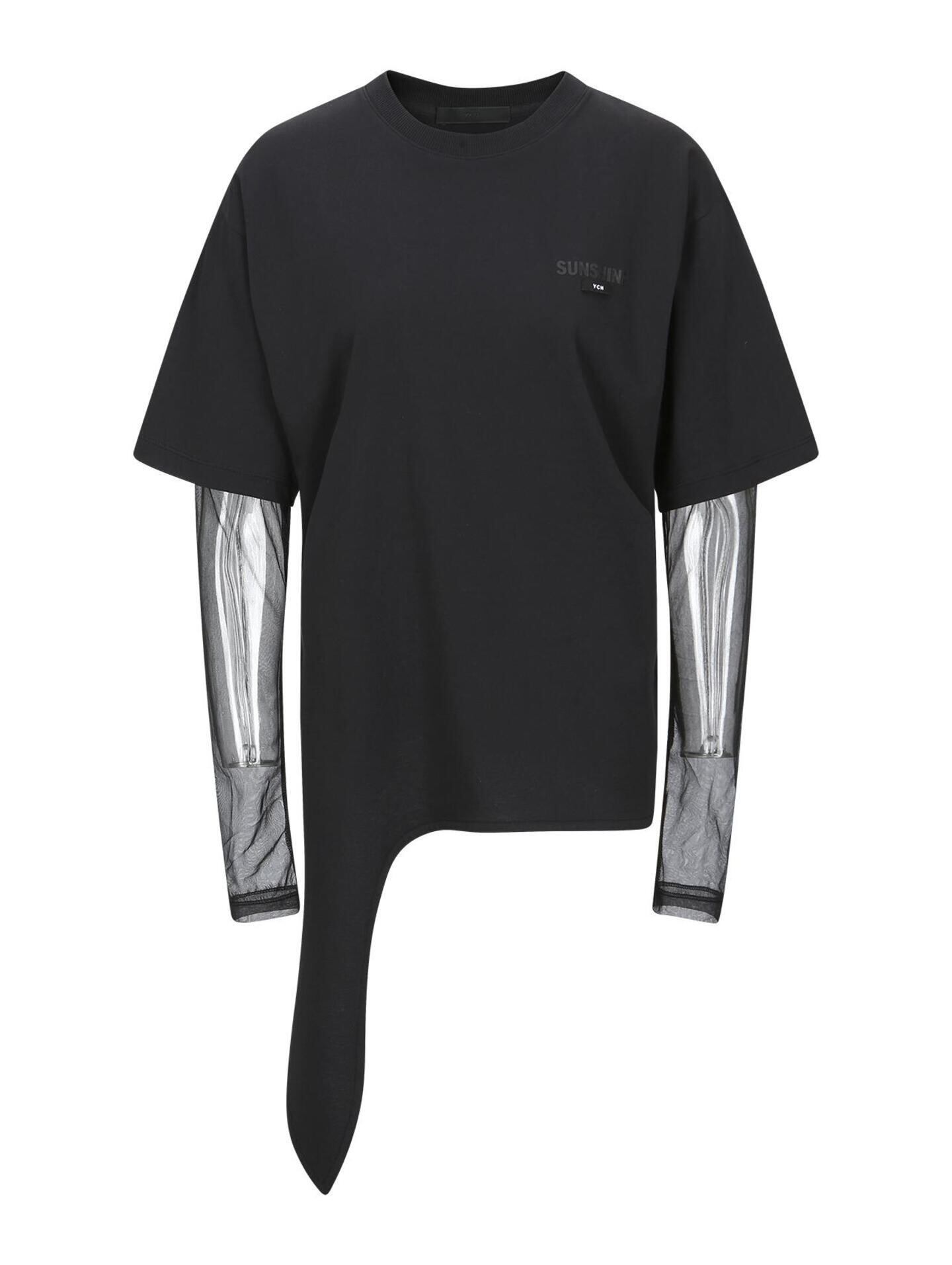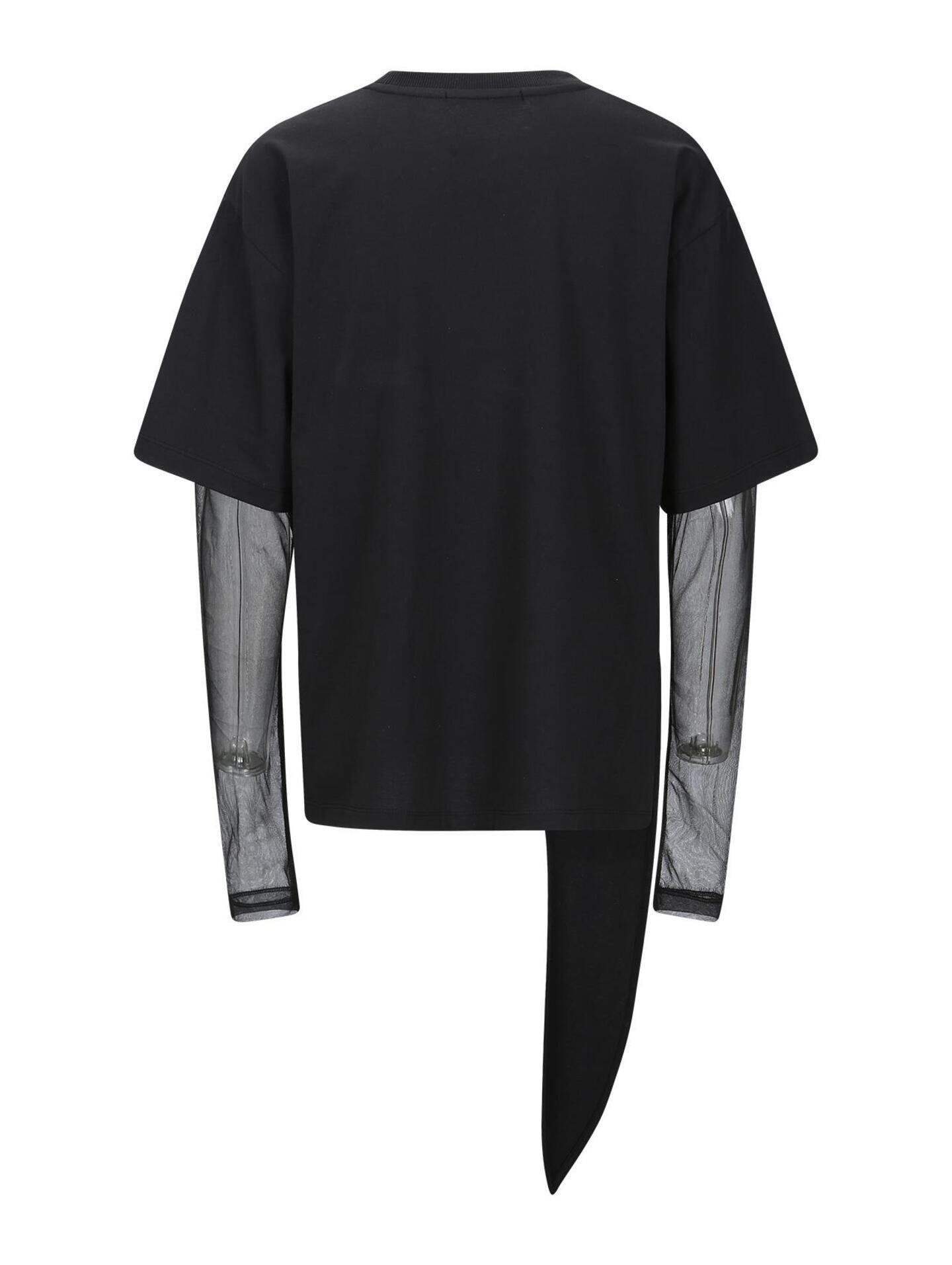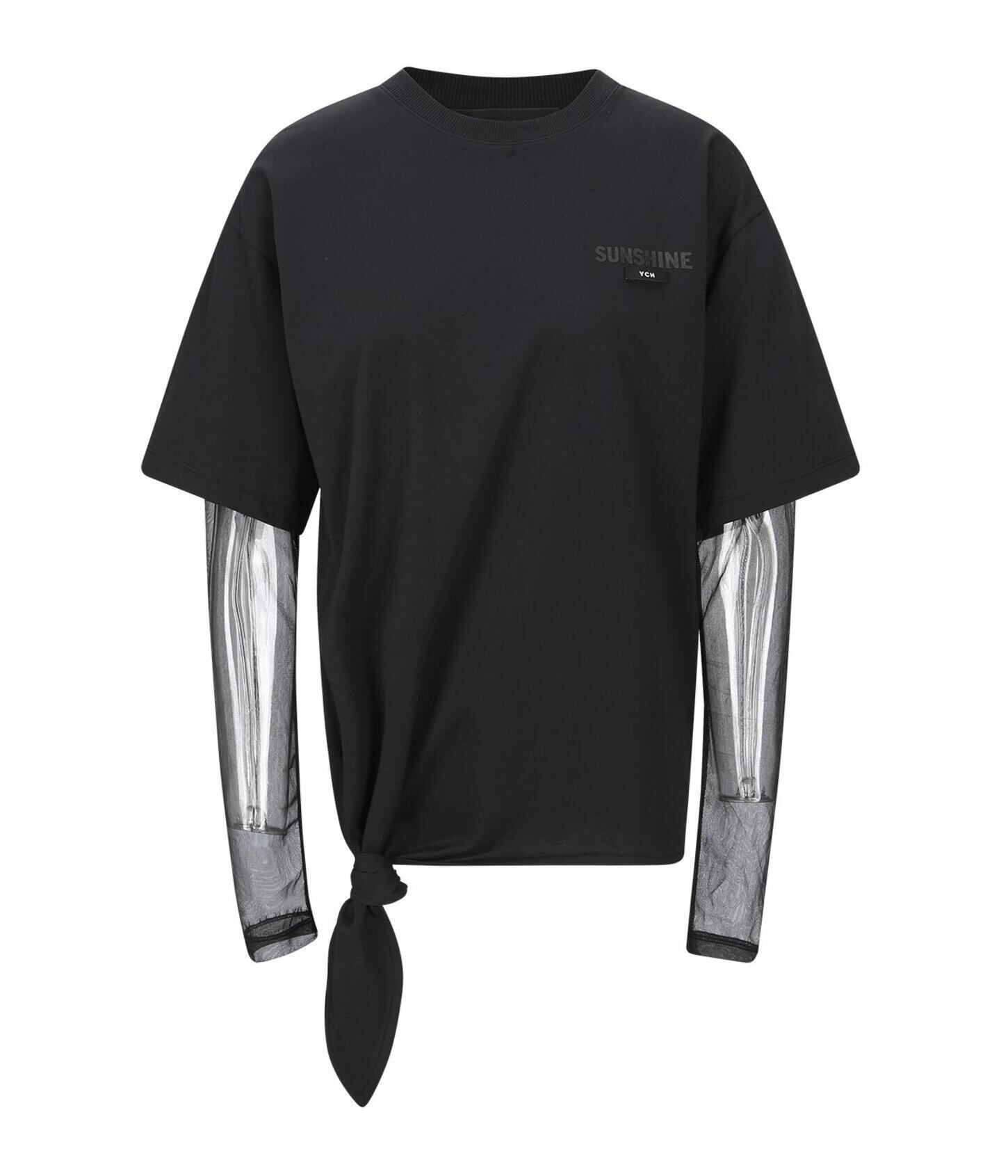[YCH] KNOTTED BOTTOM T-SHIRT WITH MESH SLEEVE (black)