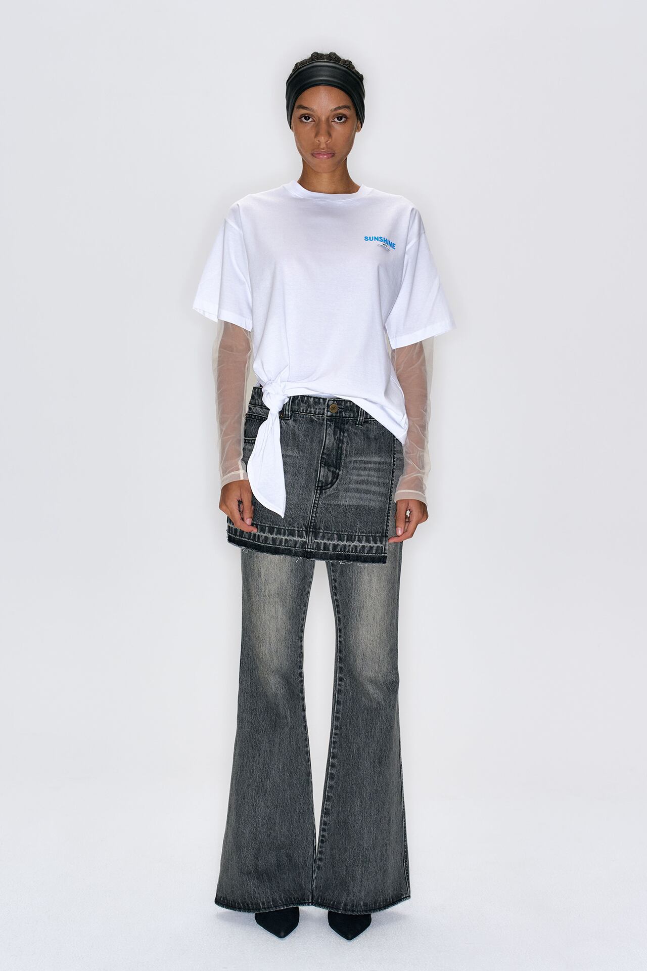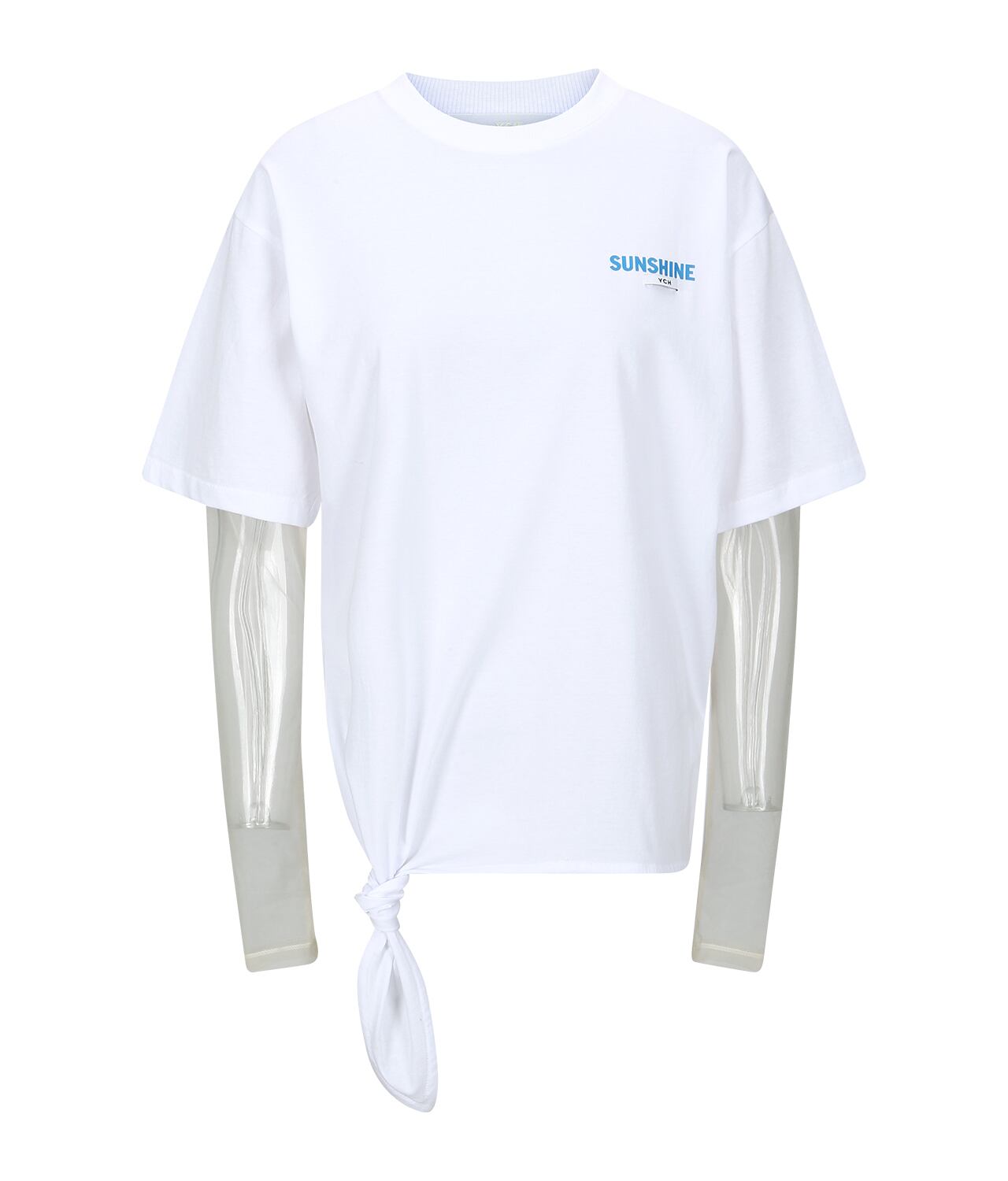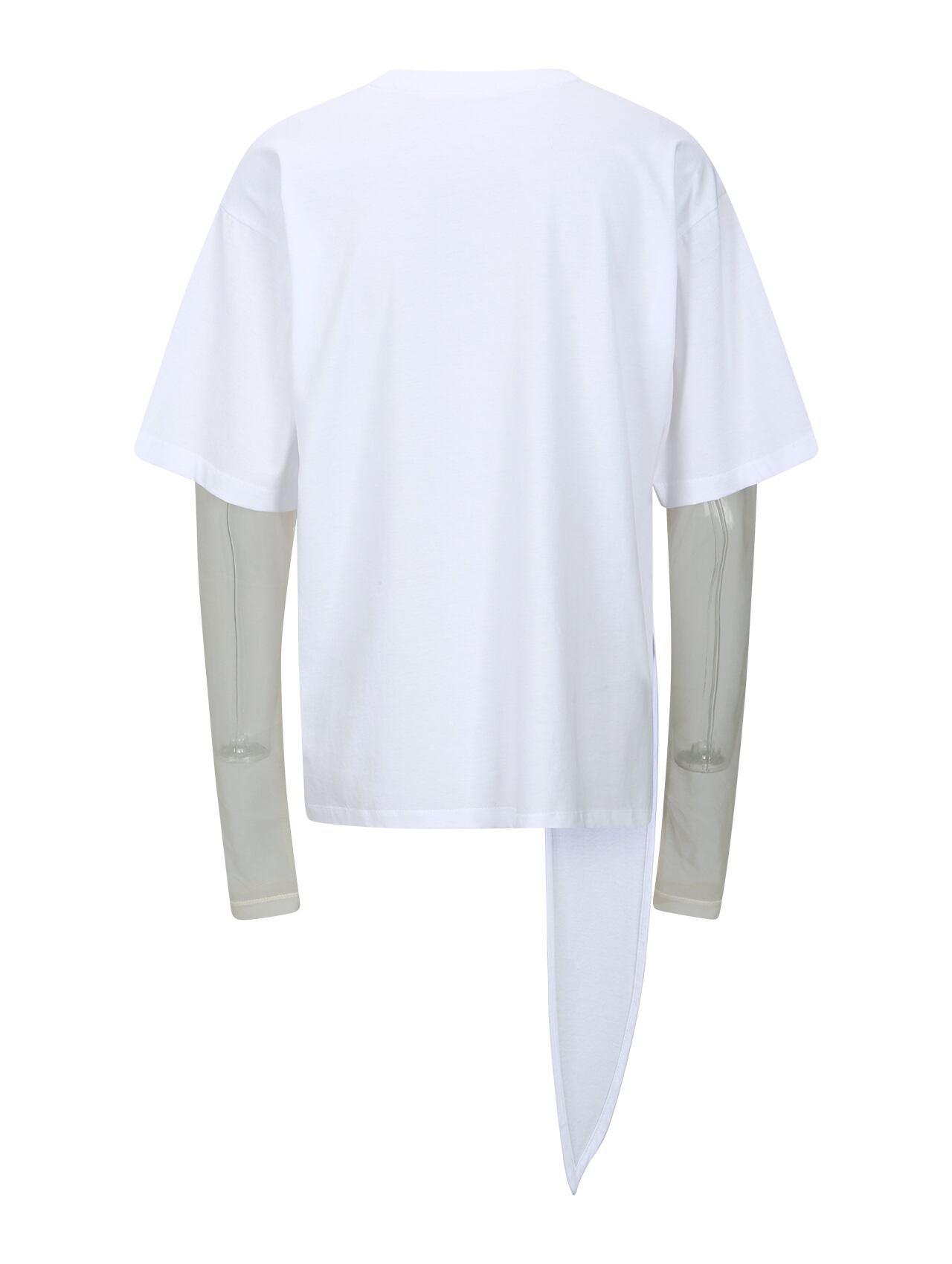 [YCH] KNOTTED BOTTOM T-SHIRT WITH MESH SLEEVE (white)