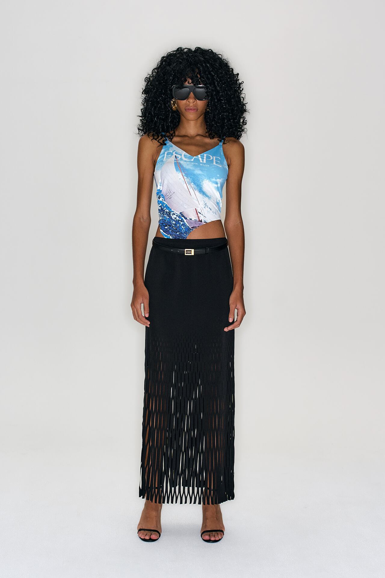 [YCH] "ESCAPE" PRINT BOTTOM DETAIL SLEEVELESS TOP (blue)