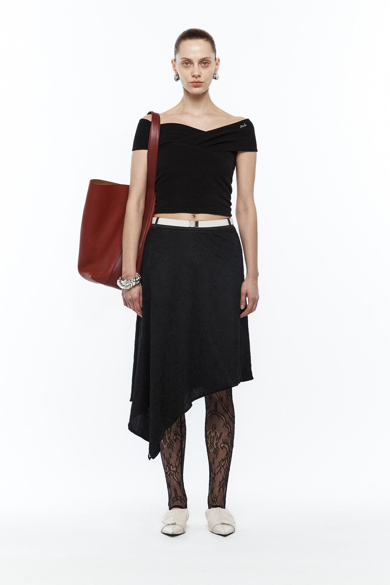 [YCH] TERRY CROSS-OVER OFF SHOULDER TOP (black)