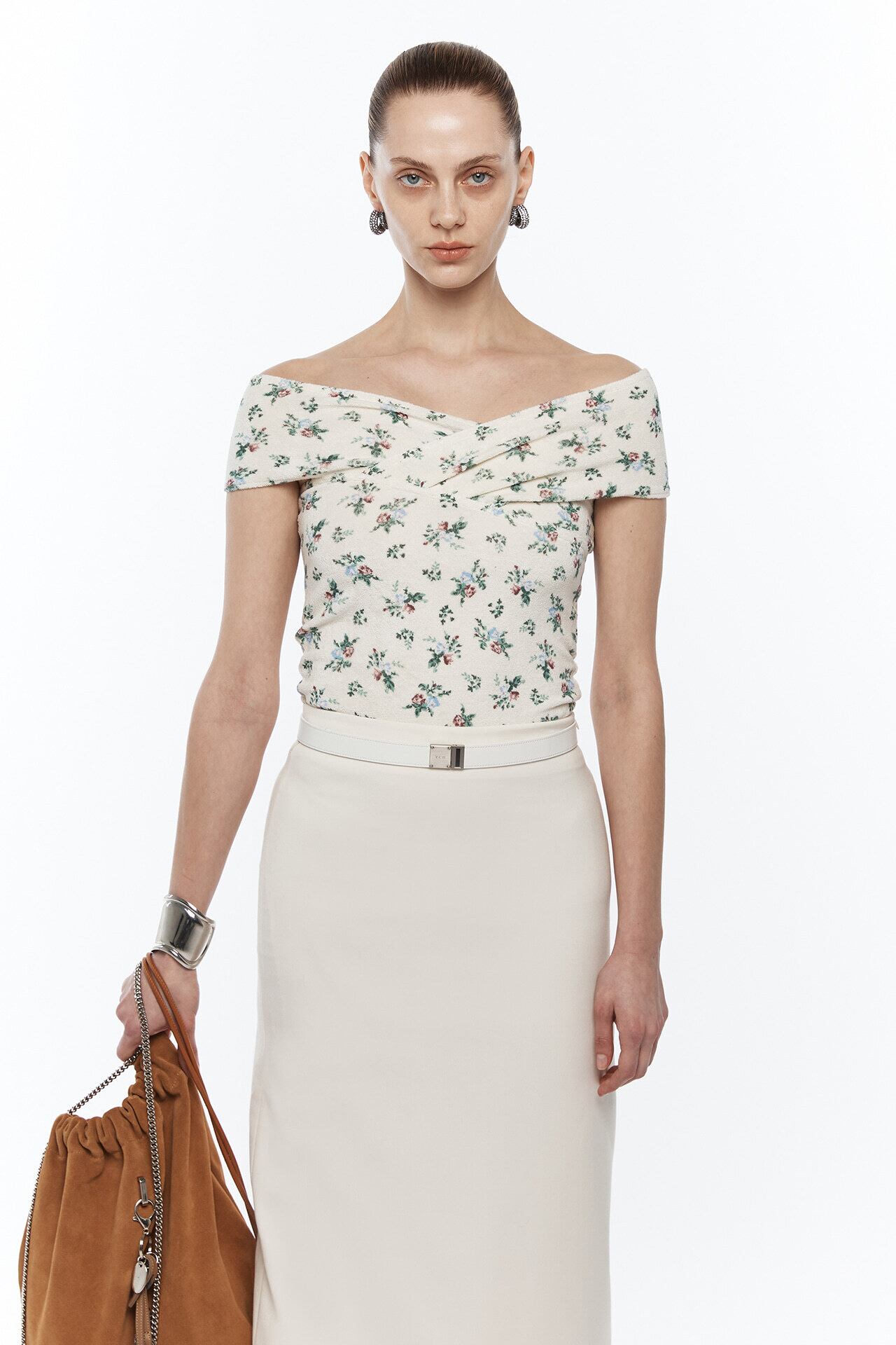 [YCH] TERRY CROSS-OVER OFF SHOULDER TOP (cream) 正規品 韓国ブランド 韓国通販 韓国代行 韓国ファッション スリータイムズ ワイシーエイチ 日本 店舗