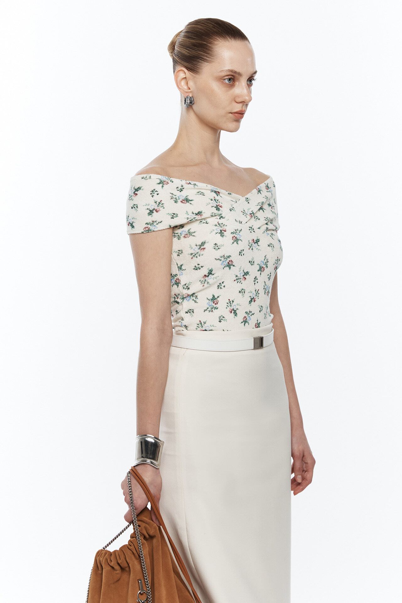 [YCH] TERRY CROSS-OVER OFF SHOULDER TOP (cream)