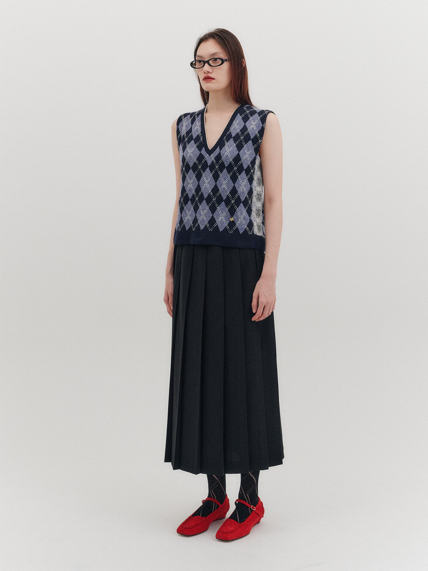 [EENK][WOMEN] Argyle Knit Vest – Navy 正規品 韓国ブランド 韓国通販 韓国代行 韓国ファッション インク 日本 店舗