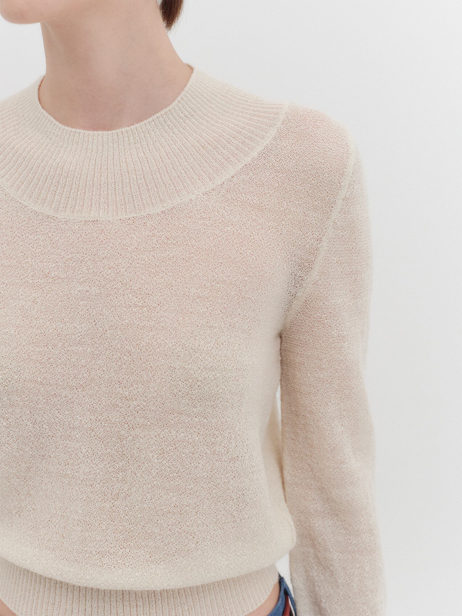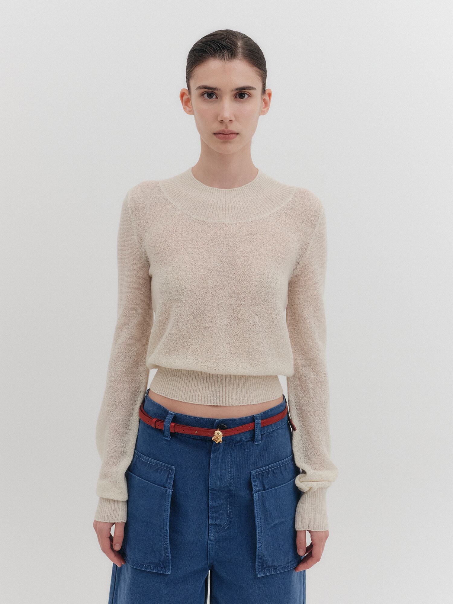 [EENK] Sheer Long Sleeve Knit Top – Cream