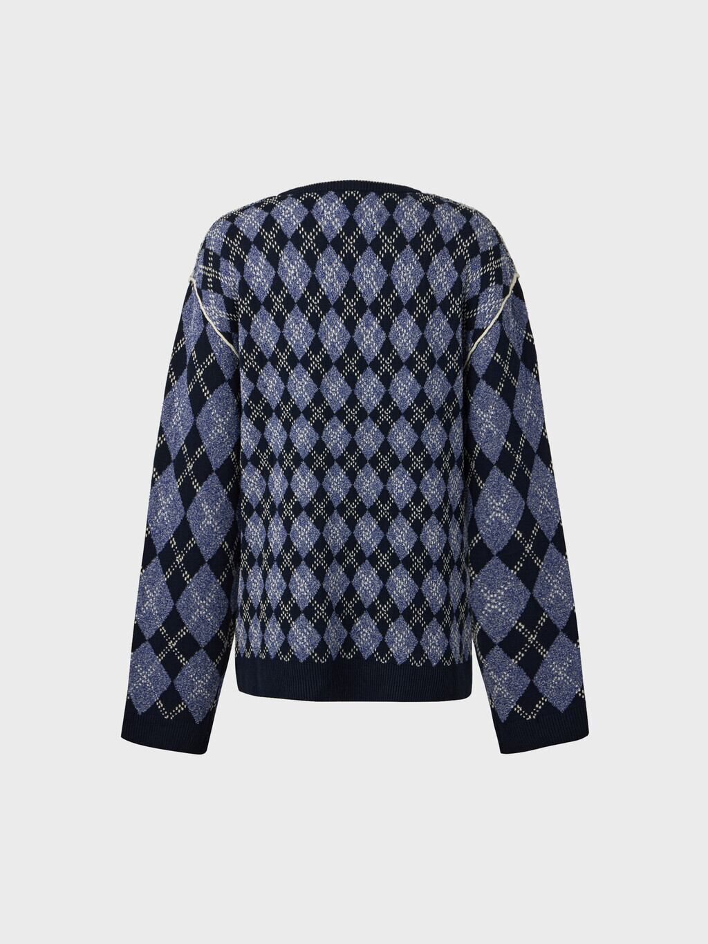 [EENK][WOMEN] V-Neck Argyle Knit Top – Navy 正規品 韓国ブランド 韓国通販 韓国代行 韓国ファッション インク 日本 店舗