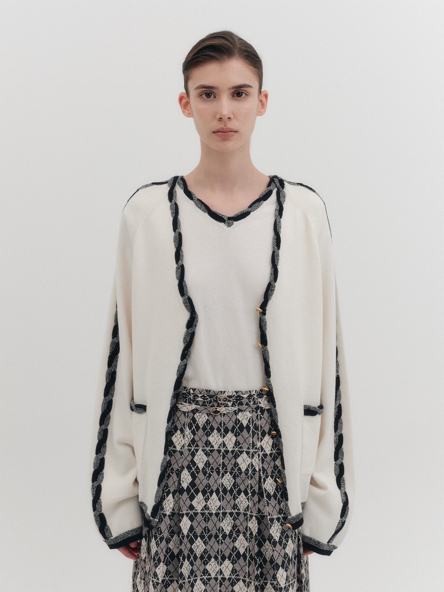[EENK] Twist Edge Knit Cardigan – Ivory
