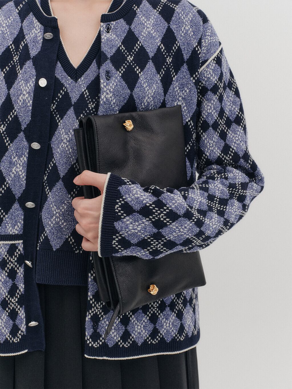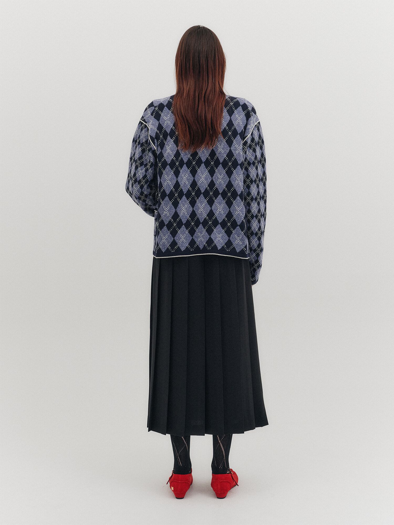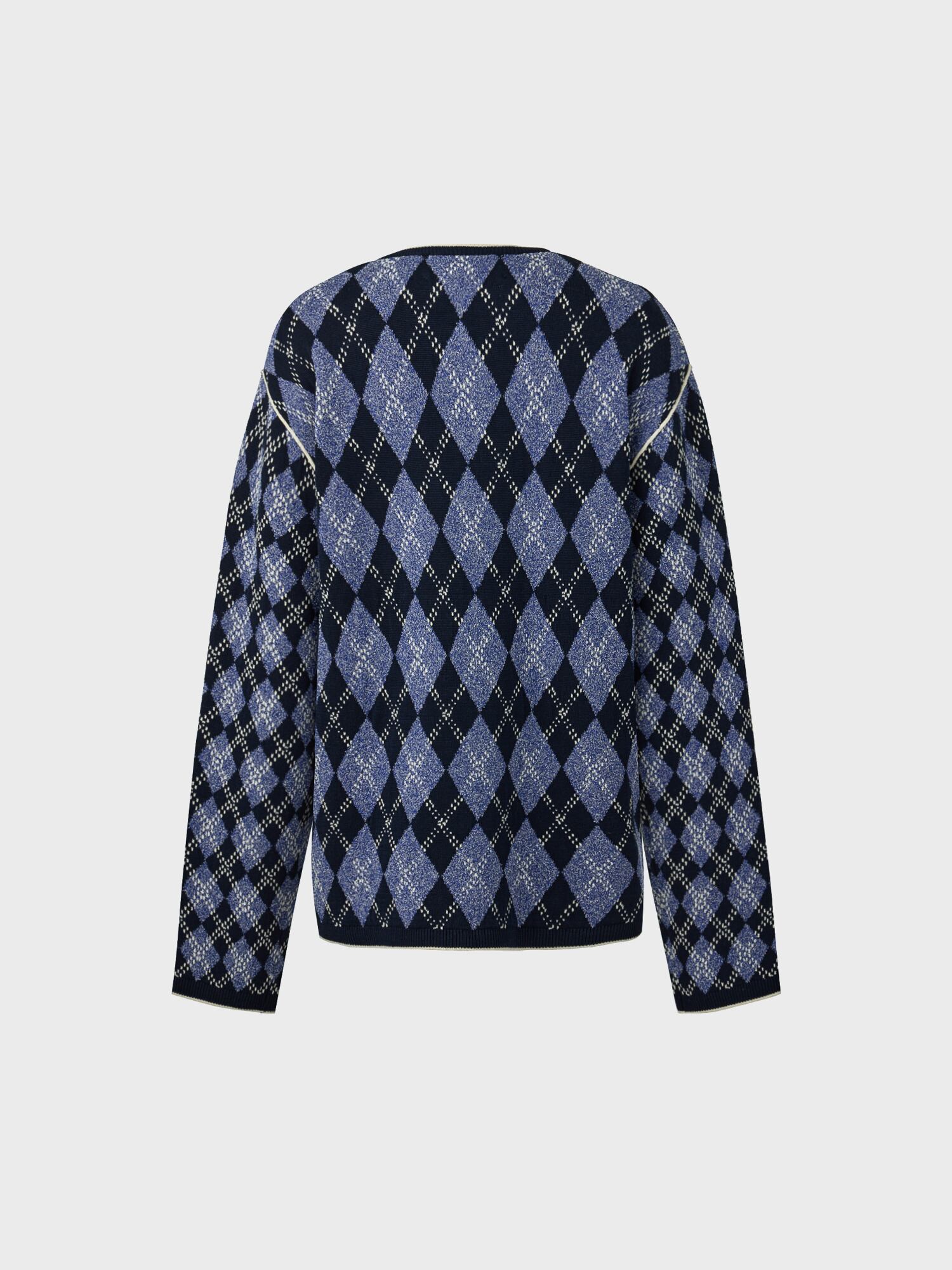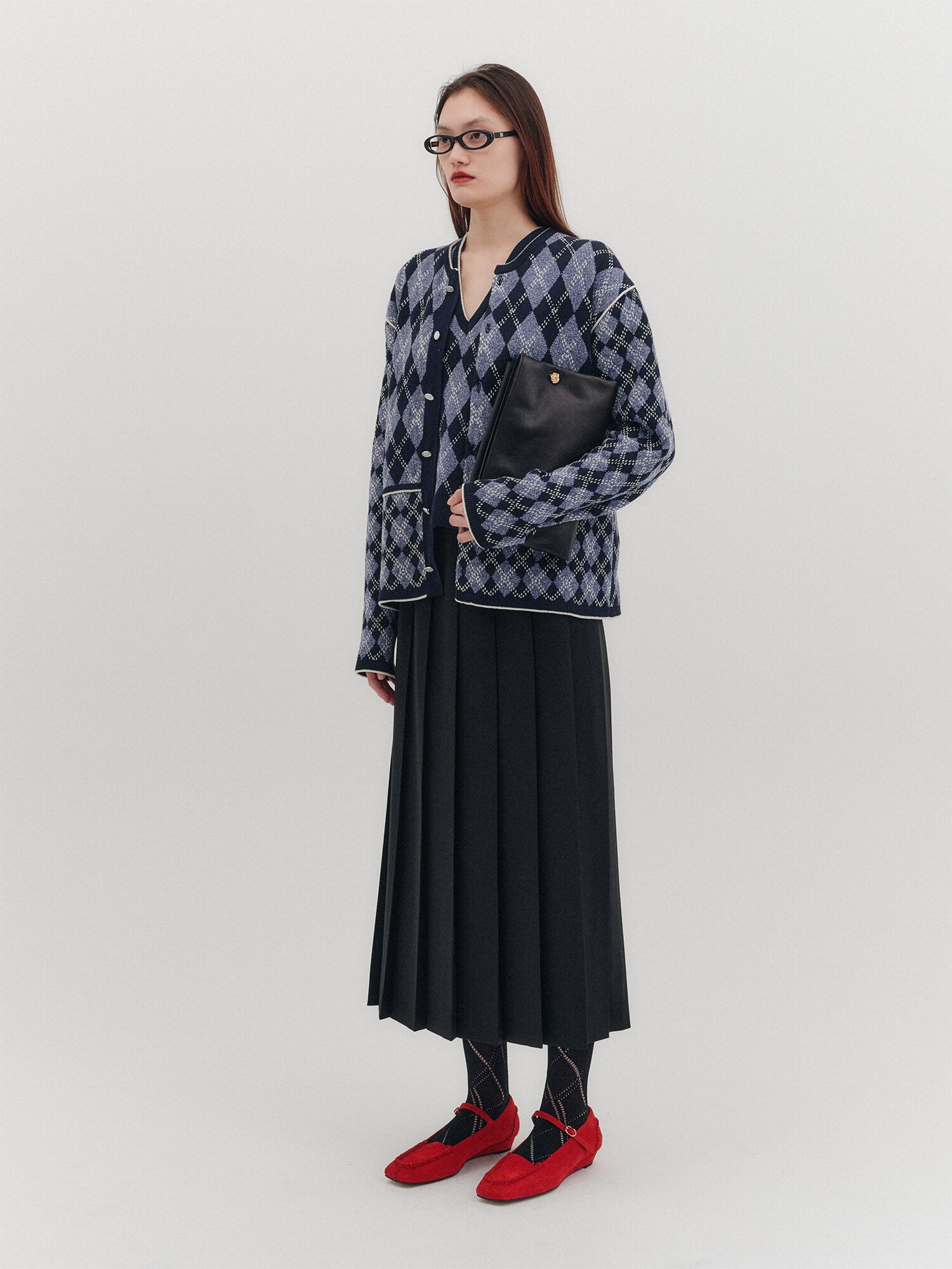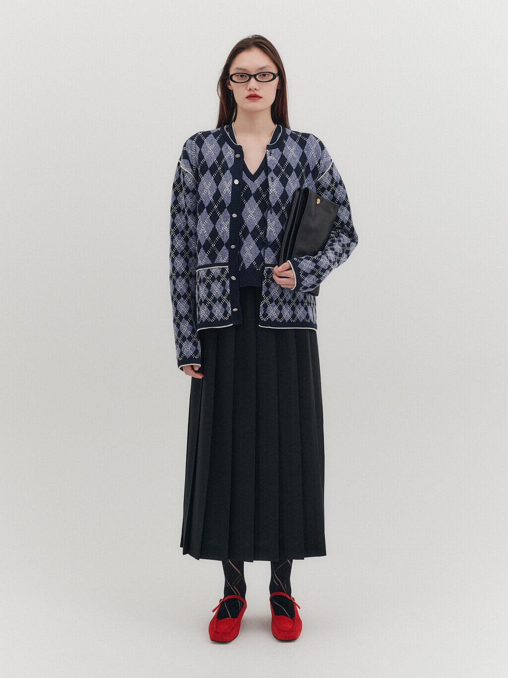 [EENK][WOMEN] Argyle Knit Cardigan – Navy 正規品 韓国ブランド 韓国通販 韓国代行 韓国ファッション インク 日本 店舗