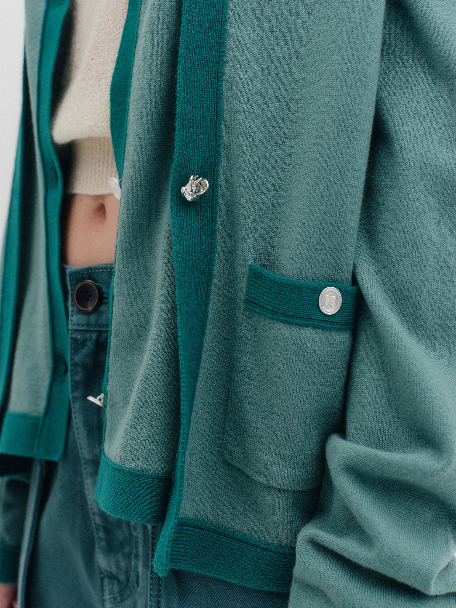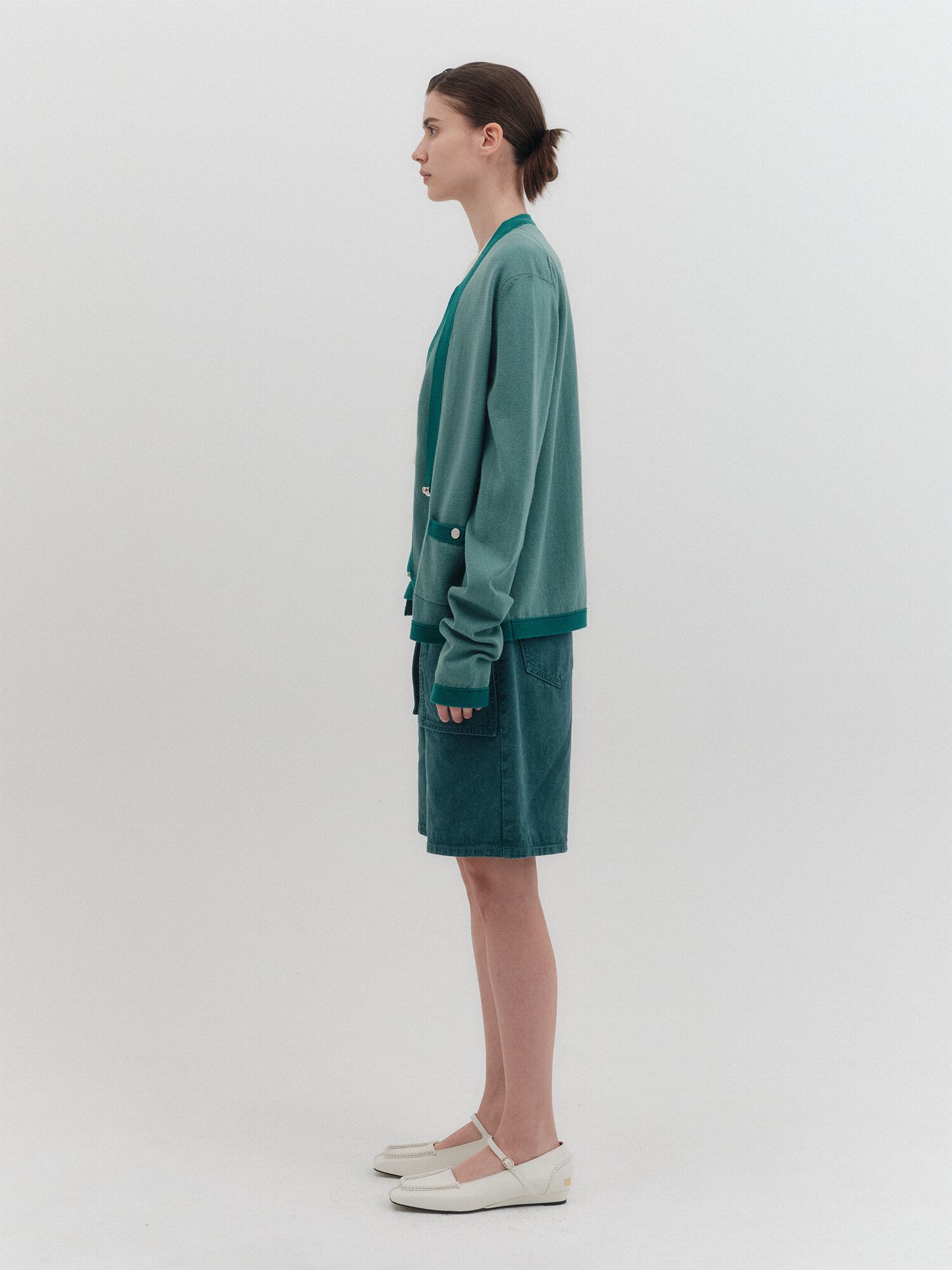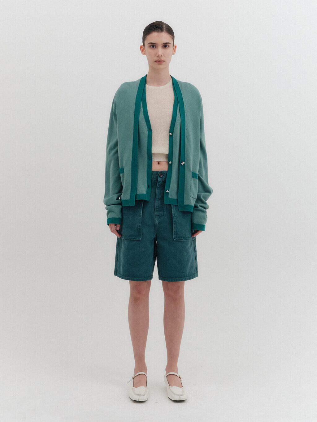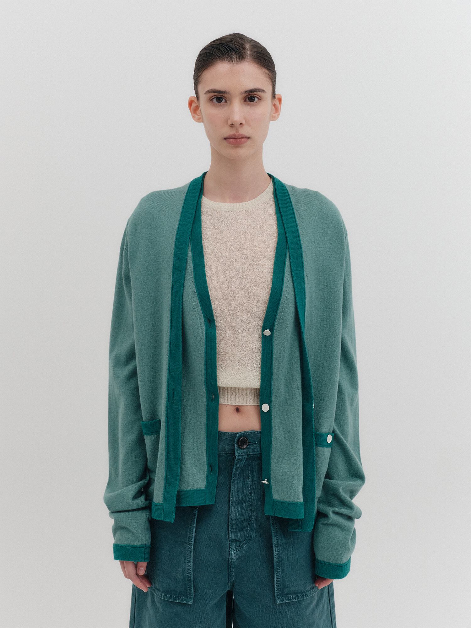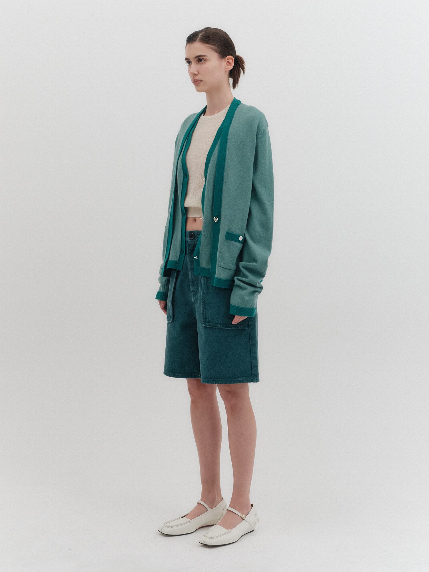 [EENK] Layered Knit Cardigan - Green