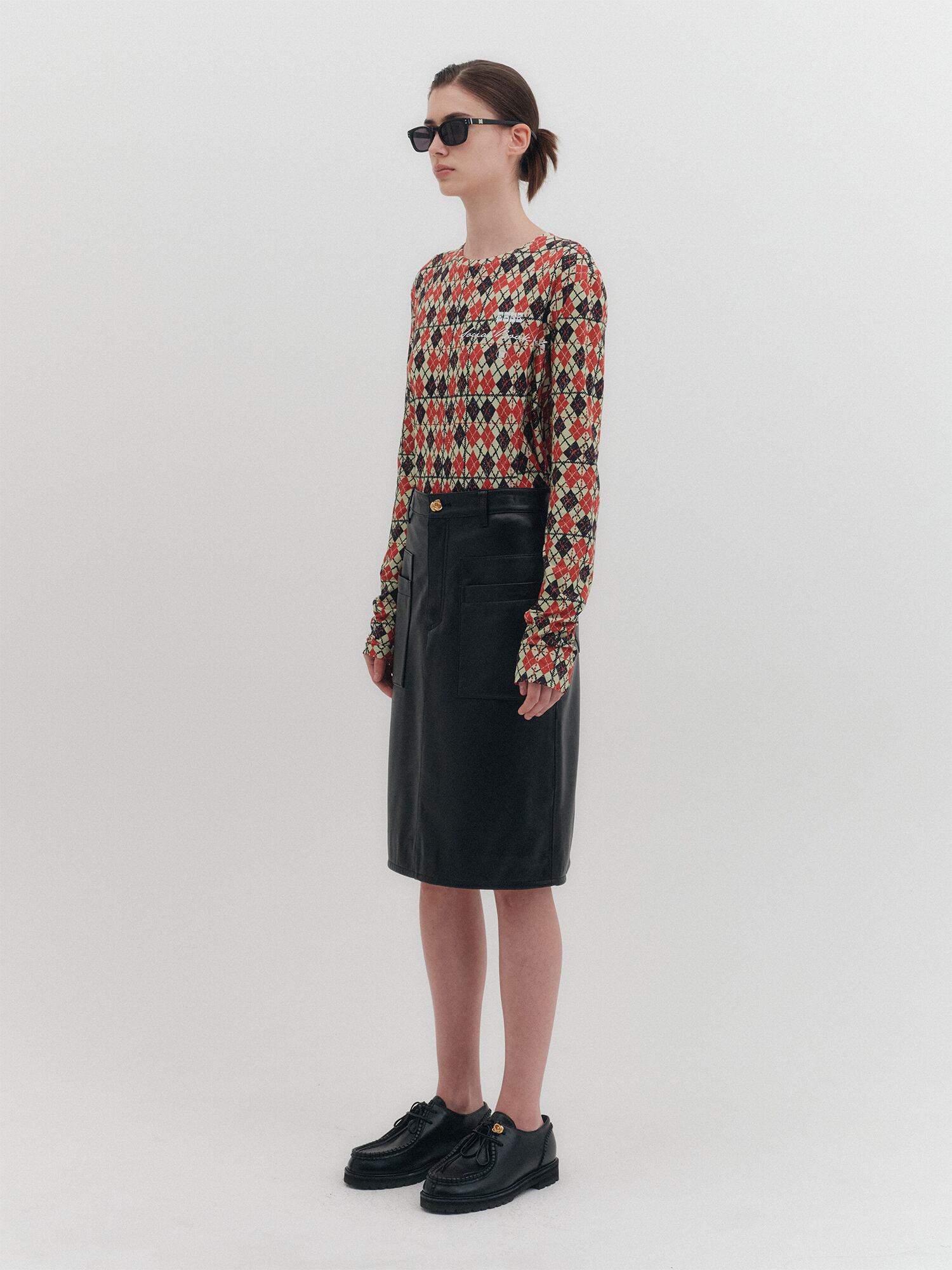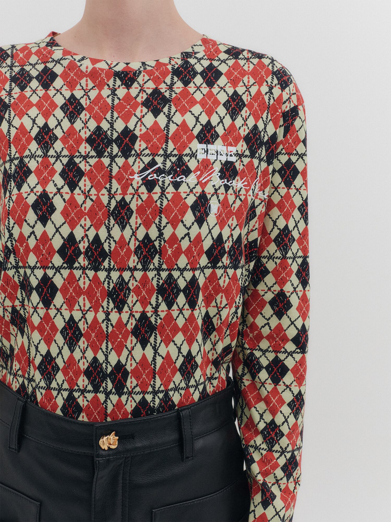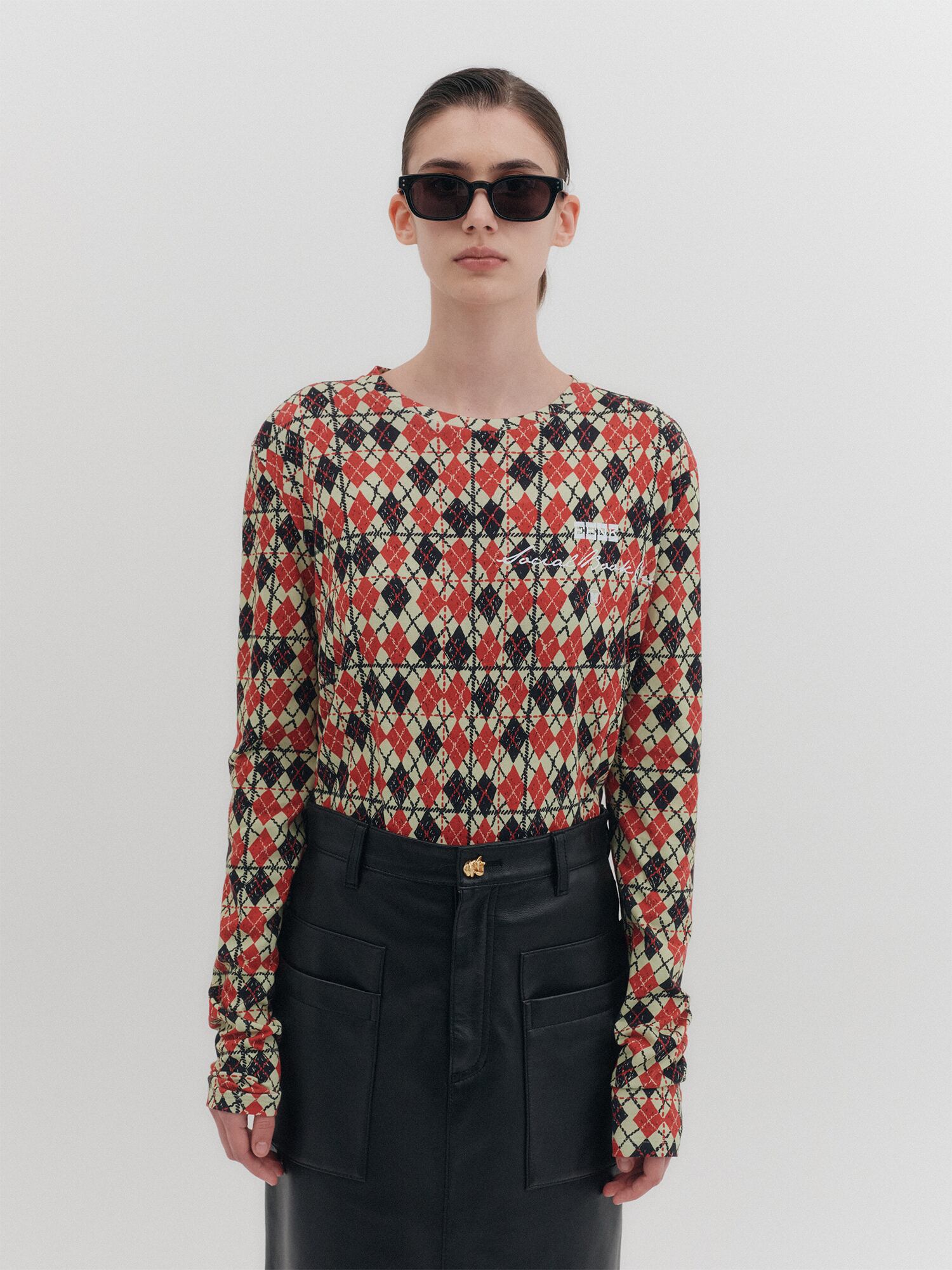 [EENK] Argyle Long Sleeve T-Shirt - Red