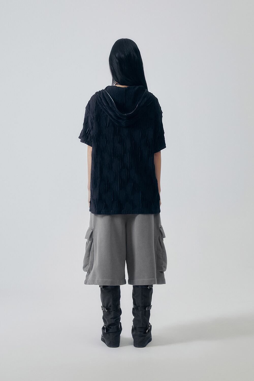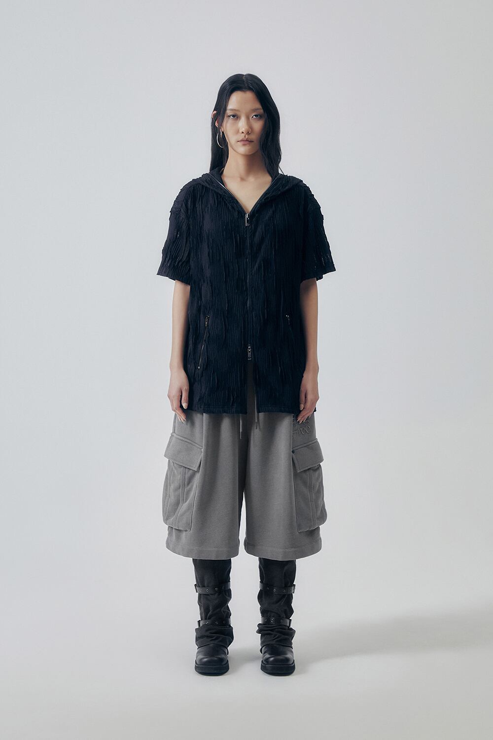 [TREEMINGBIRD] Pleated Hooded Zip-up [ Black ]