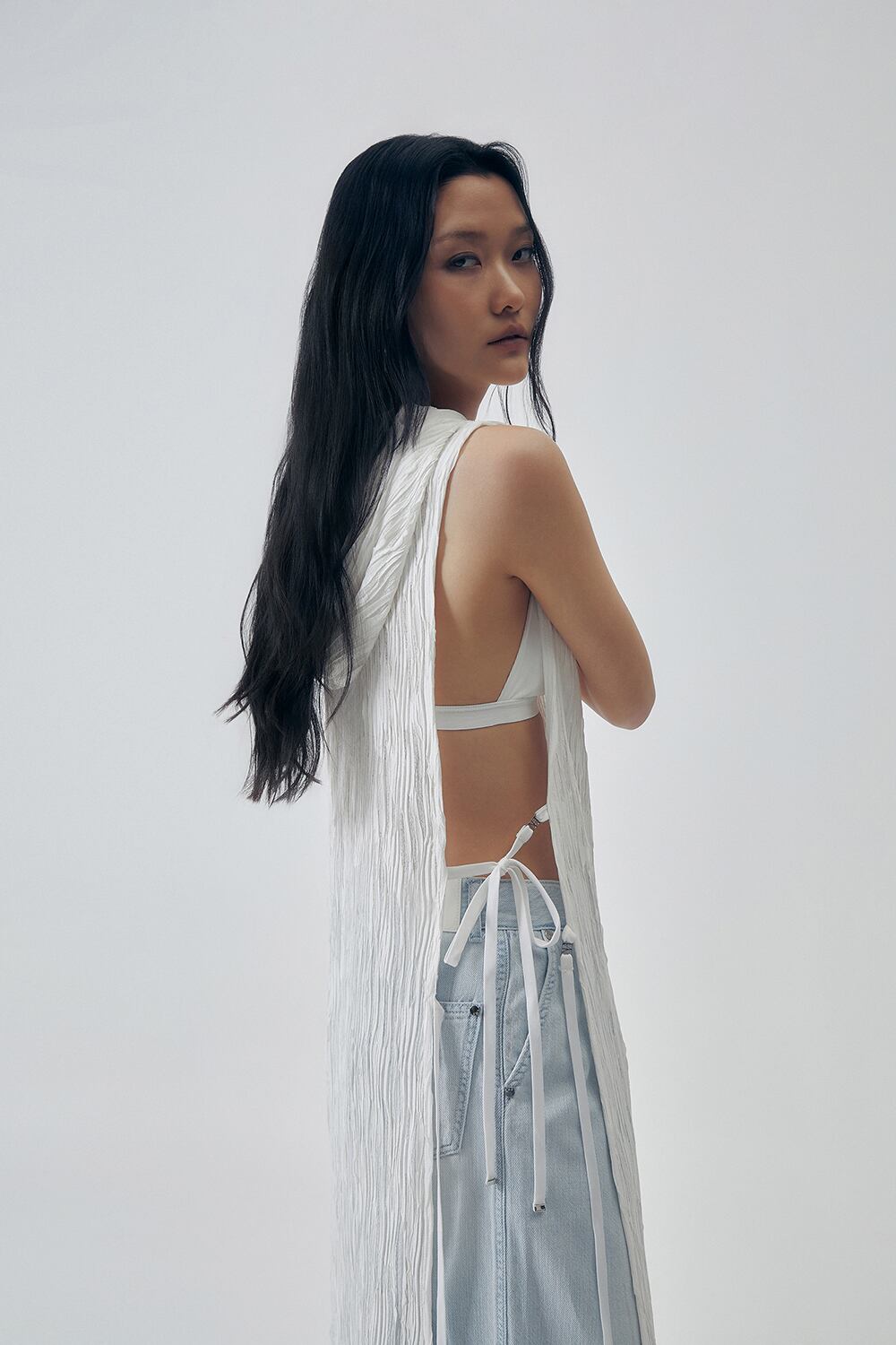 [TREEMINGBIRD] Pleated Cover-up Dress [ White ]