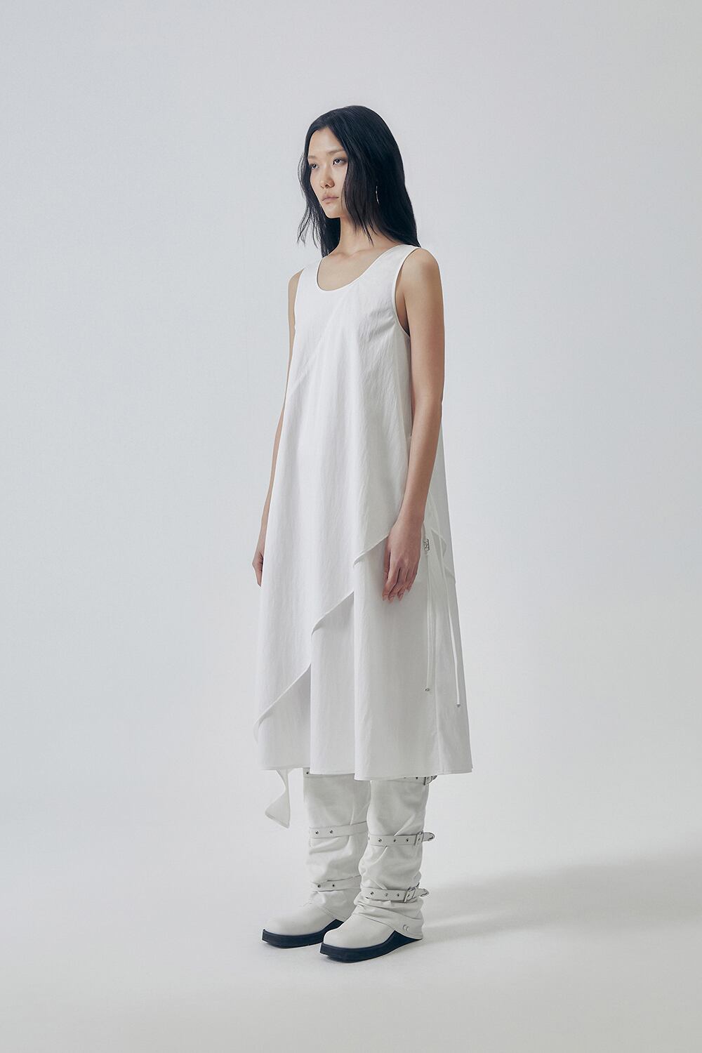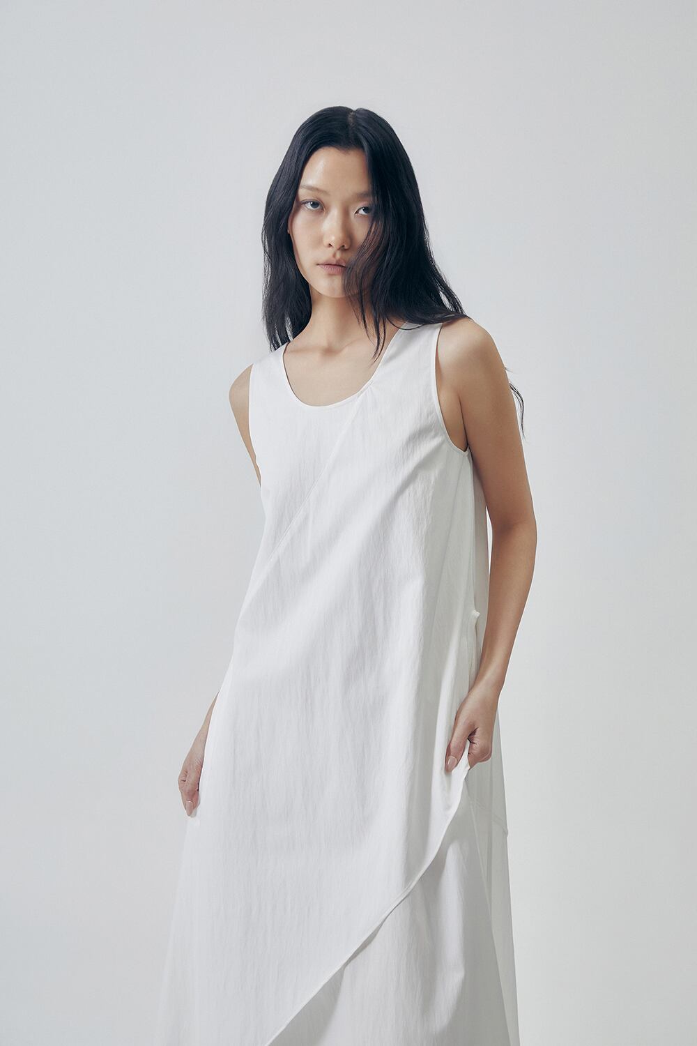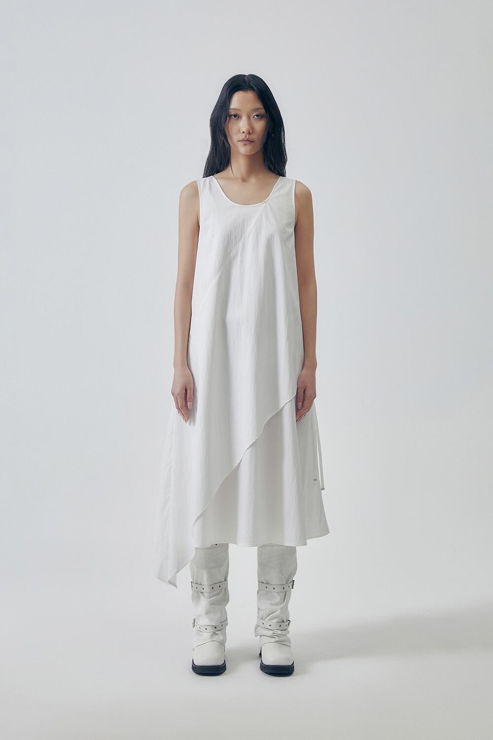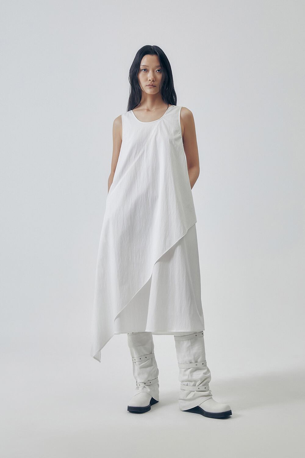 [TREEMINGBIRD] Layered Asymmetric Draped Dress [ White ]