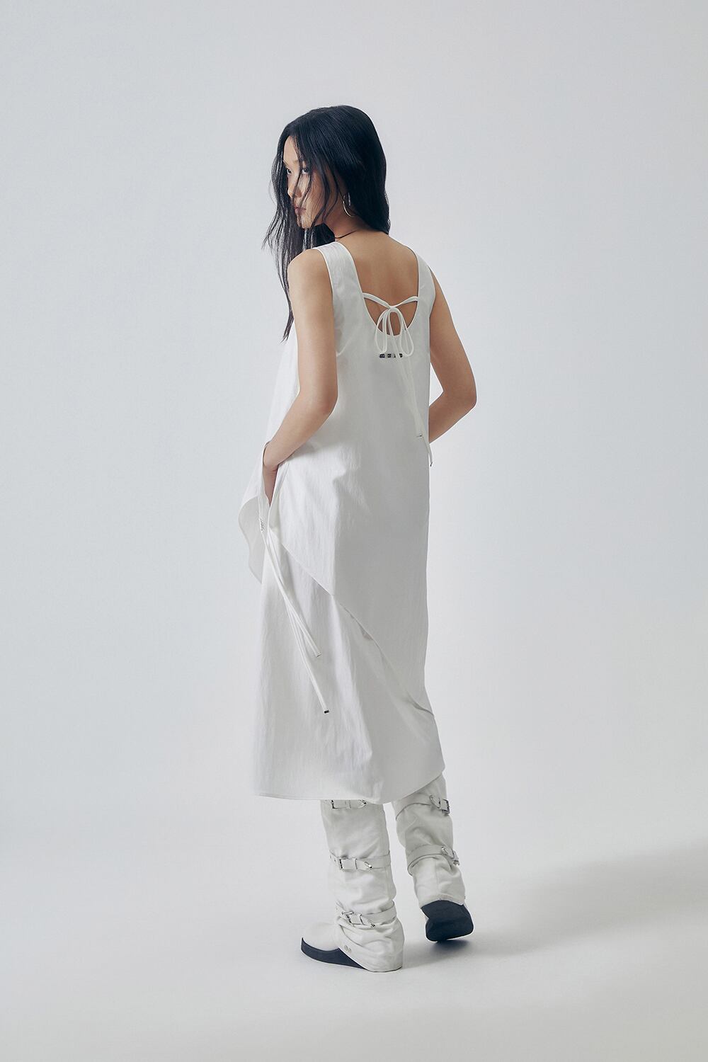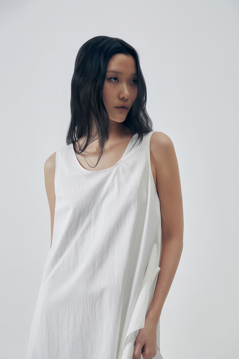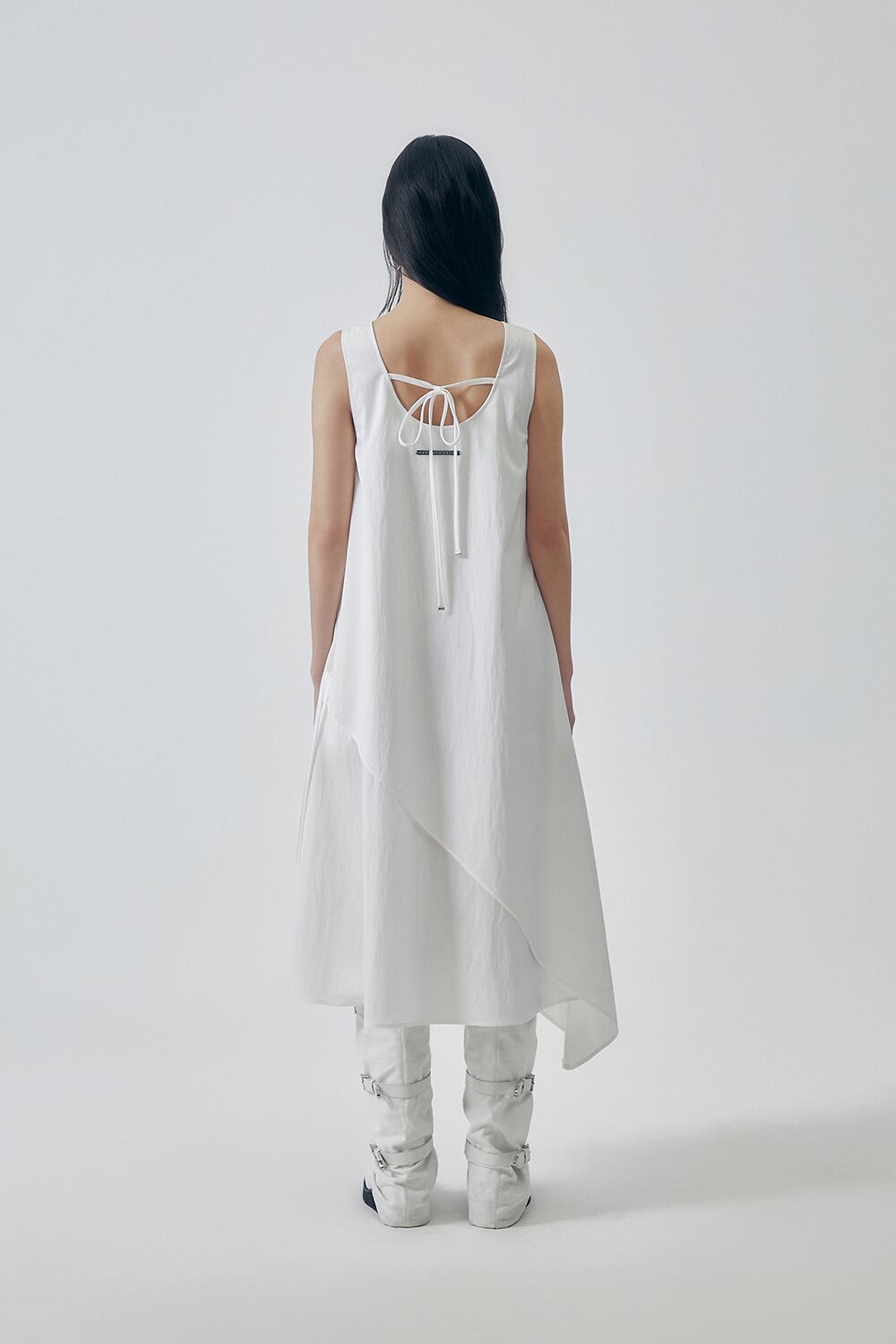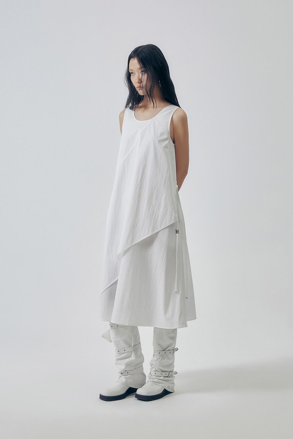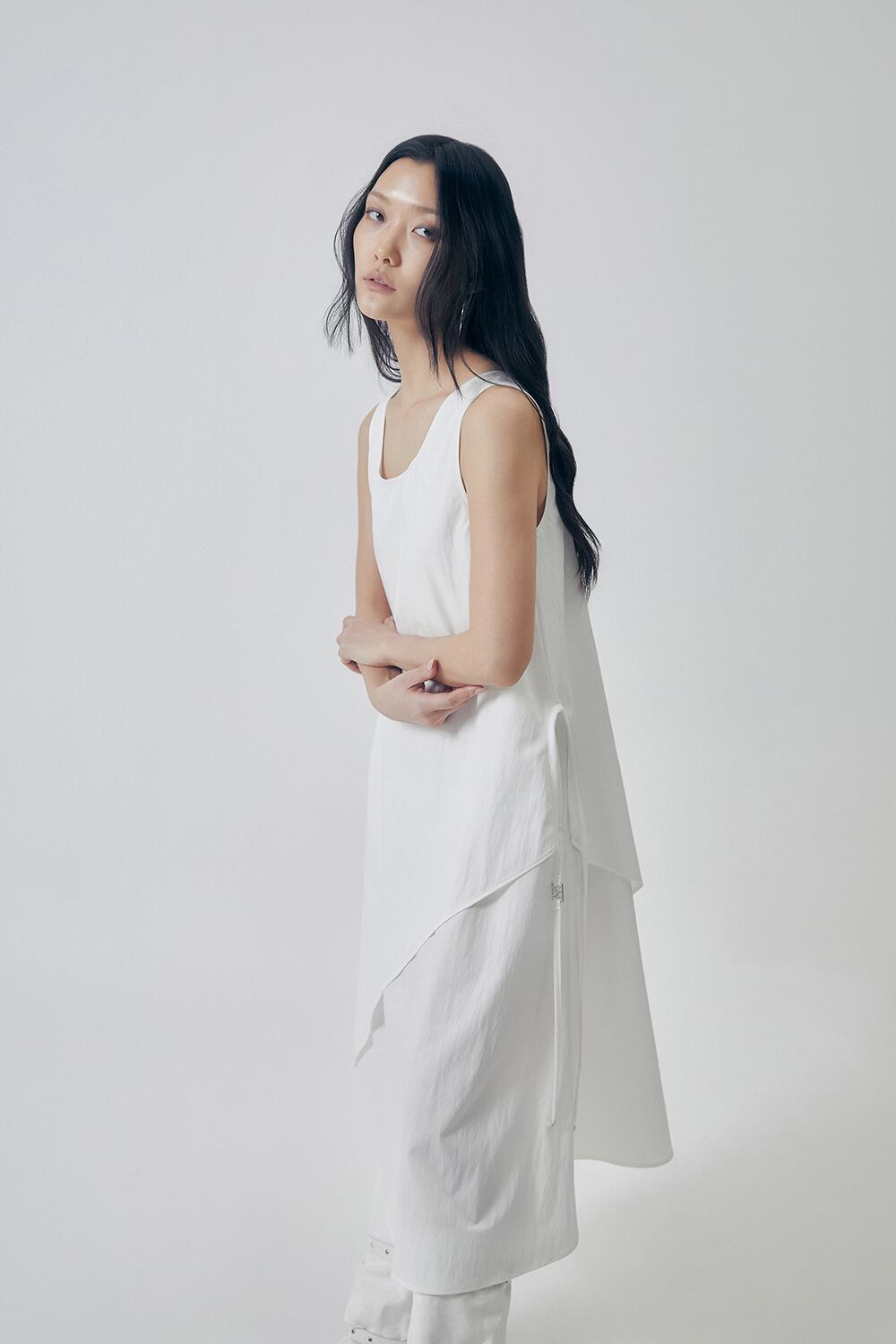 [TREEMINGBIRD] Layered Asymmetric Draped Dress [ White ]