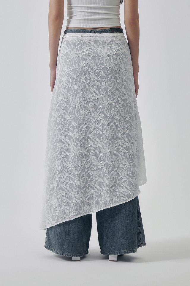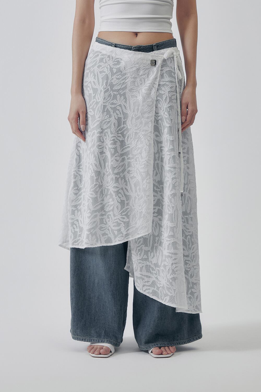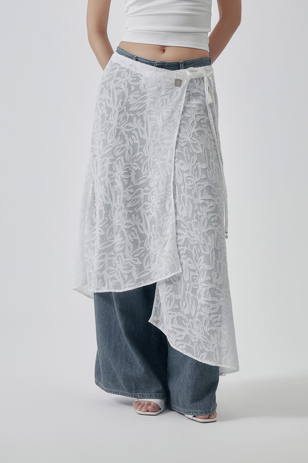 [TREEMINGBIRD] Lace Layering Wrap Skirt [ White ]