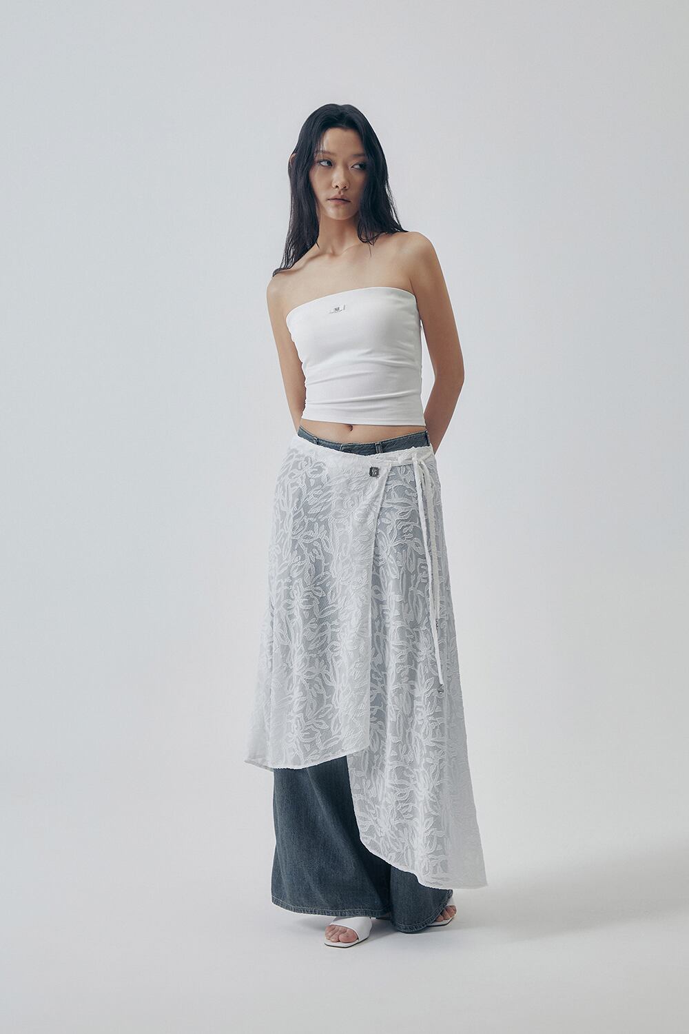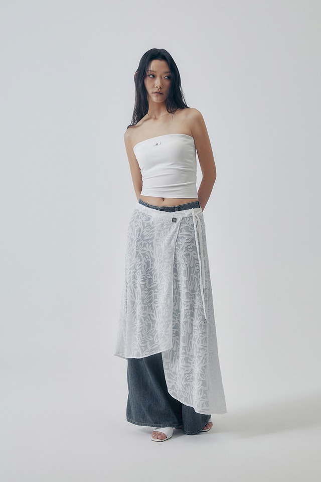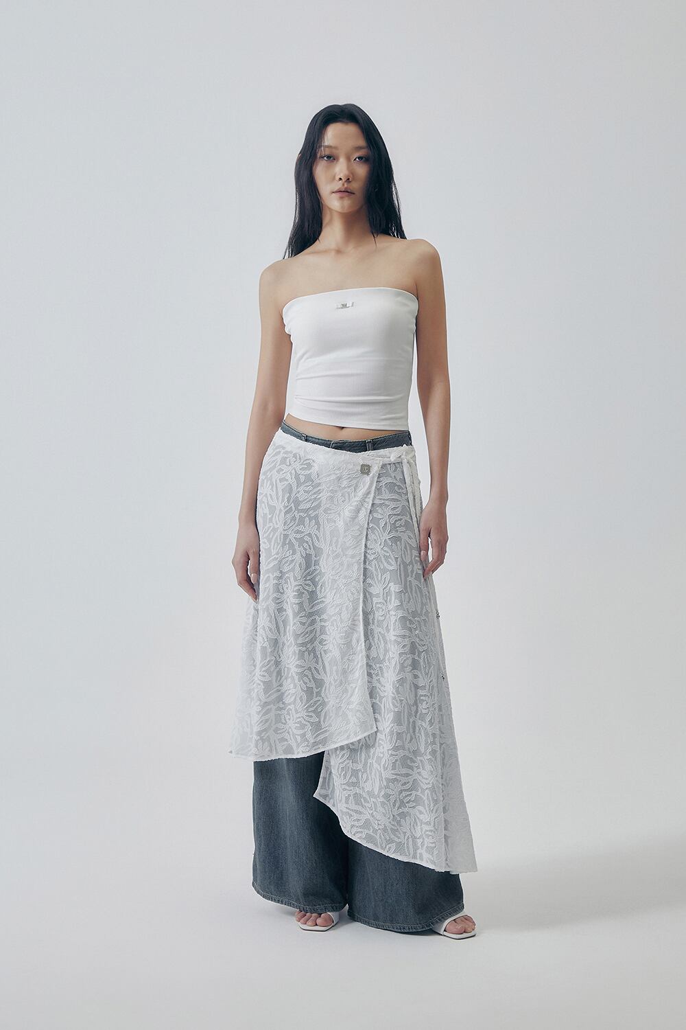 [TREEMINGBIRD] Lace Layering Wrap Skirt [ White ] 正規品 韓国ブランド 韓国通販 韓国代行 韓国ファッション TRMNGBD tmb TREEMING BIRD トリミングバード 日本 店舗