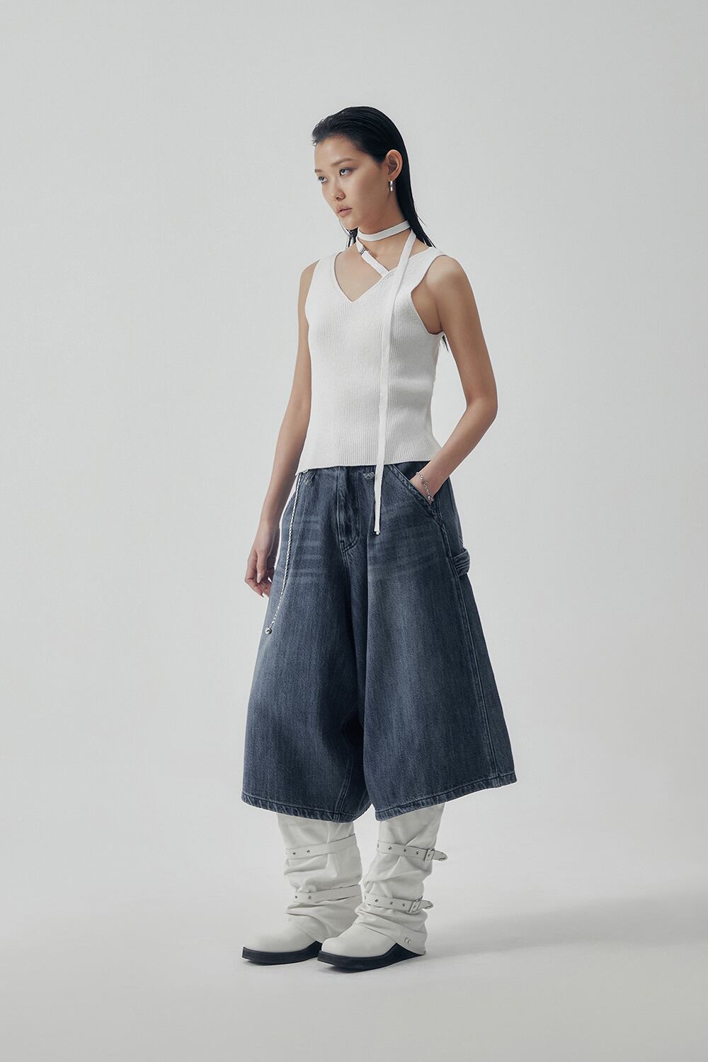 [TREEMINGBIRD] Carpenter-Strap Bermuda Denim Pants [ Blue ] 正規品 韓国ブランド 韓国通販 韓国代行 韓国ファッション TRMNGBD tmb TREEMING BIRD トリミングバード 日本 店舗