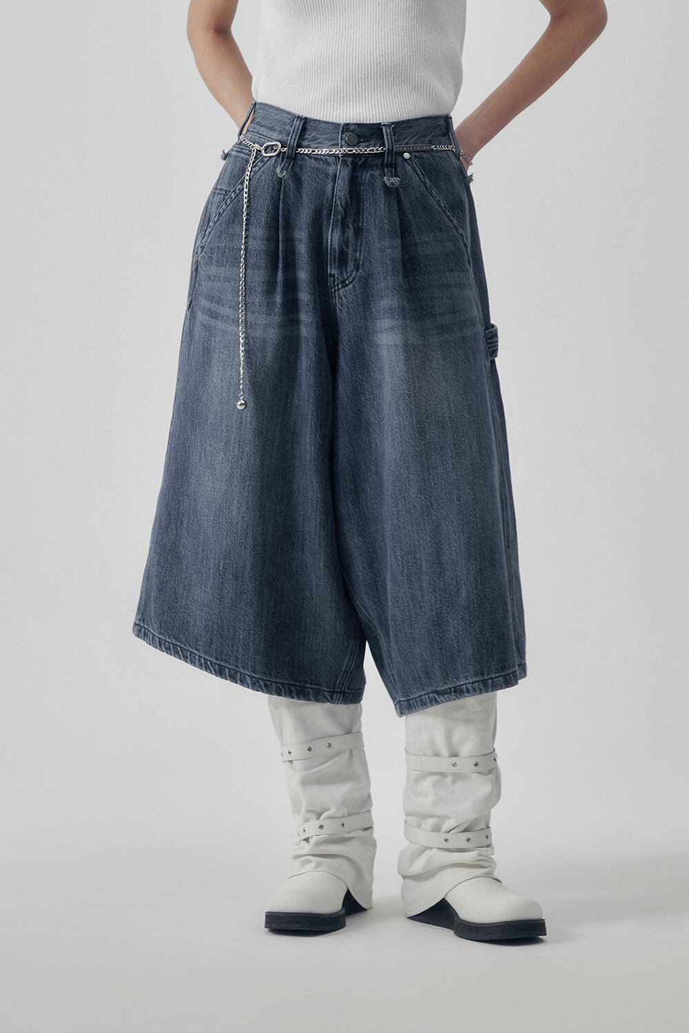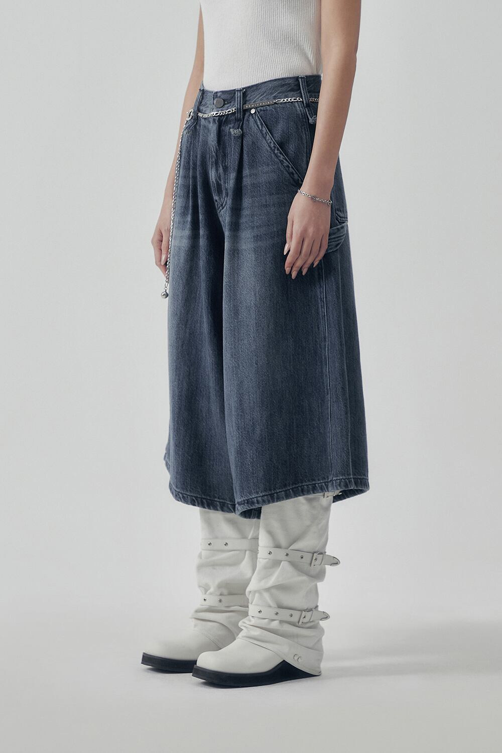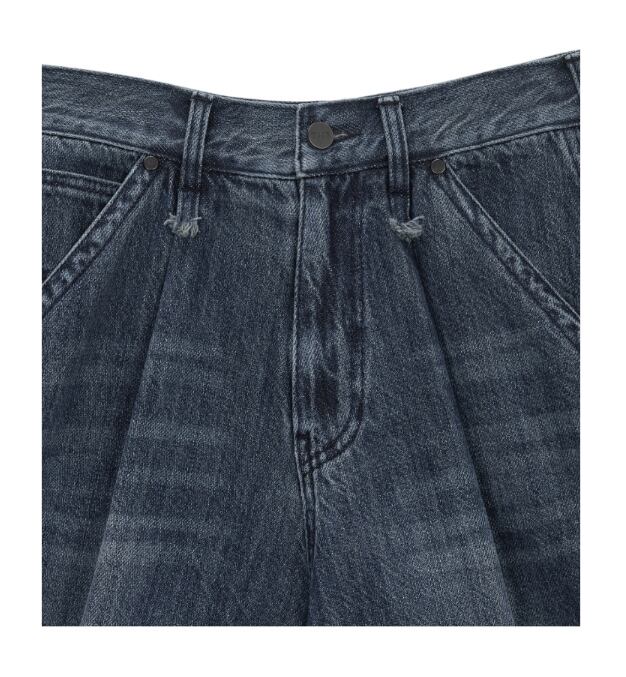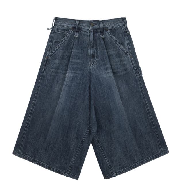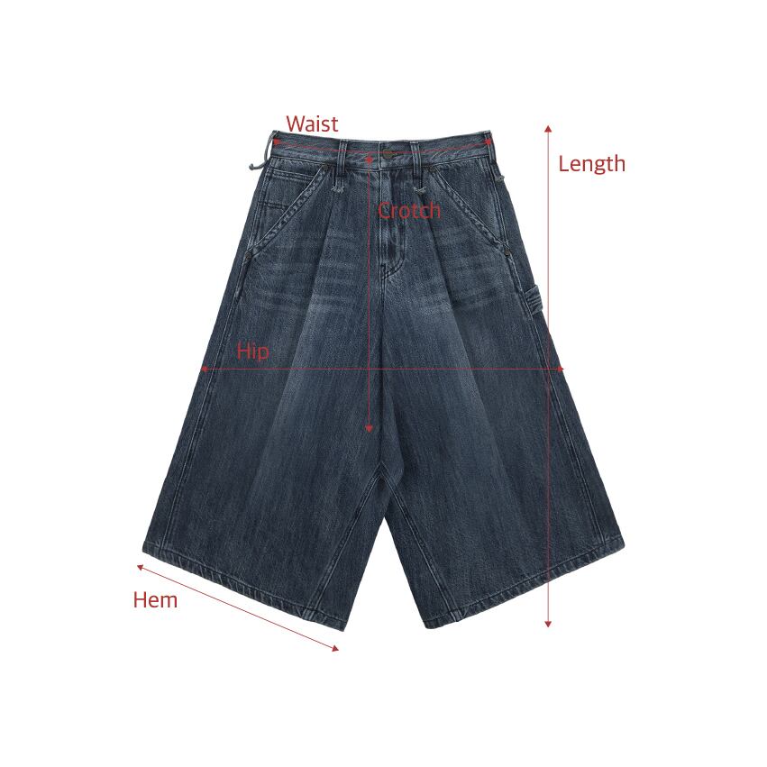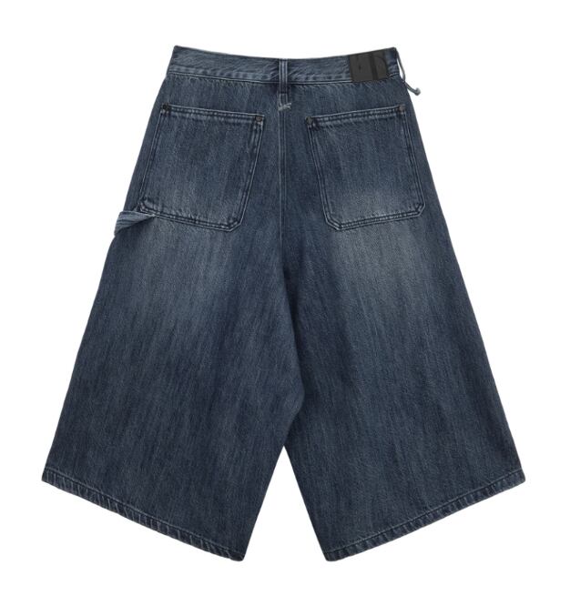 [TREEMINGBIRD] Carpenter-Strap Bermuda Denim Pants [ Blue ]