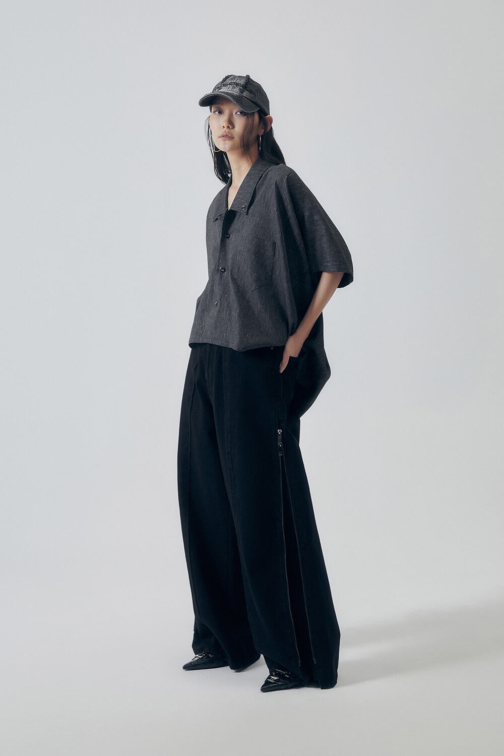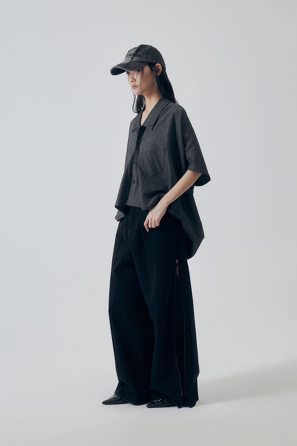 [TREEMINGBIRD] Utility Zipper Denim Pants [ Black ]