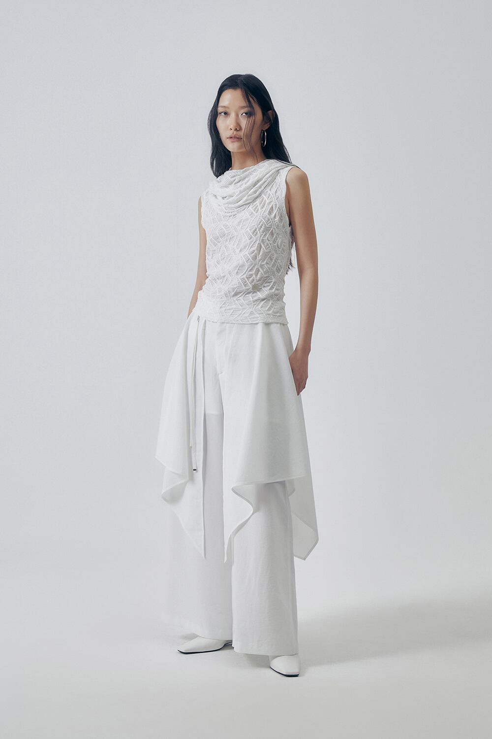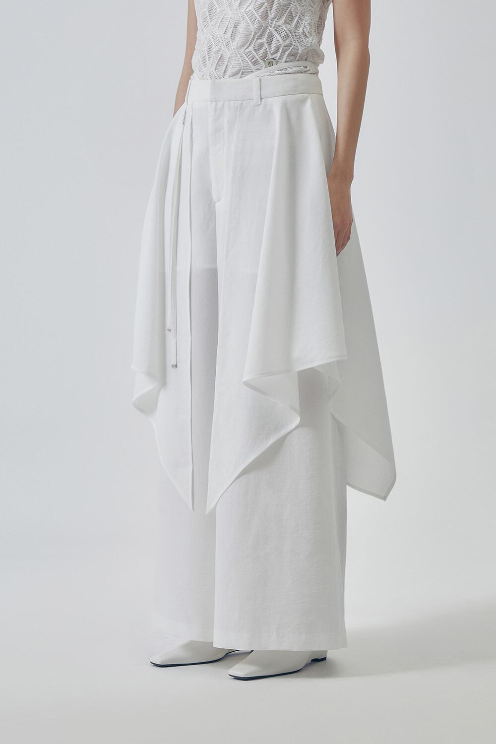 [TREEMINGBIRD] Layered Drape Strap Trouser [ White ]