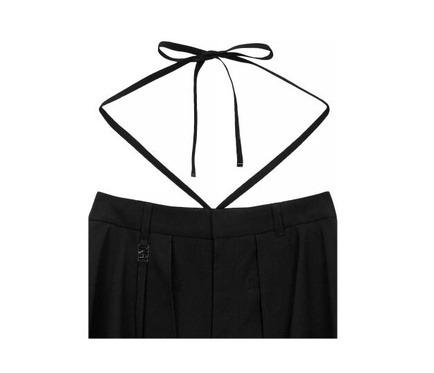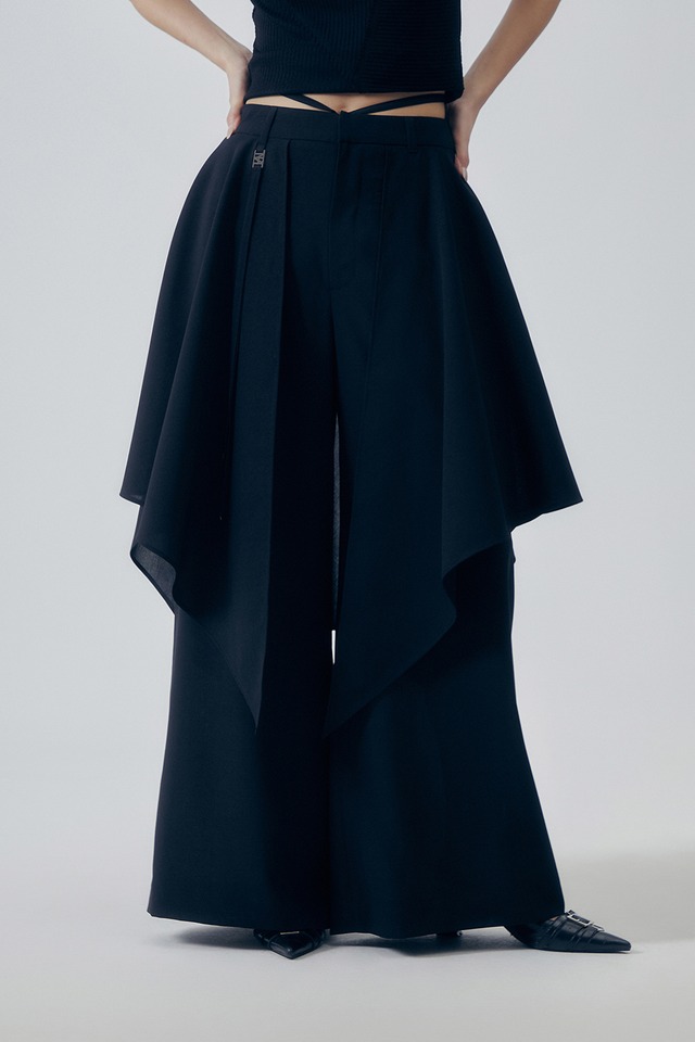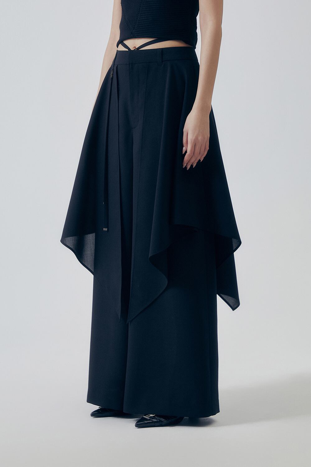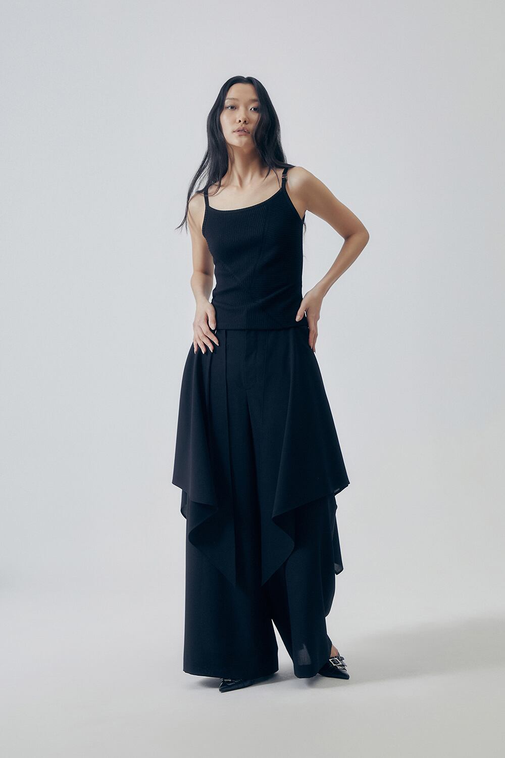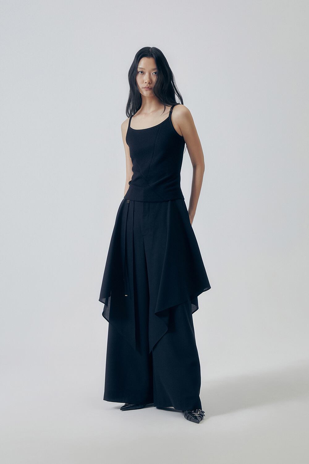 [TREEMINGBIRD] Layered Drape Strap Trouser [ Black ]