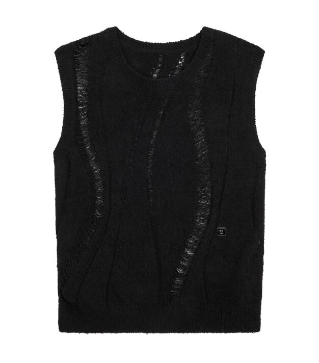 [TREEMINGBIRD] Textured Knit Vest [ Black ]