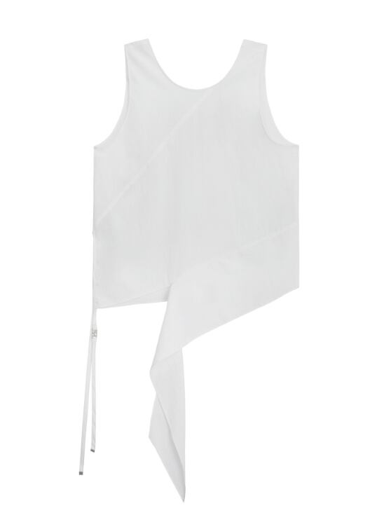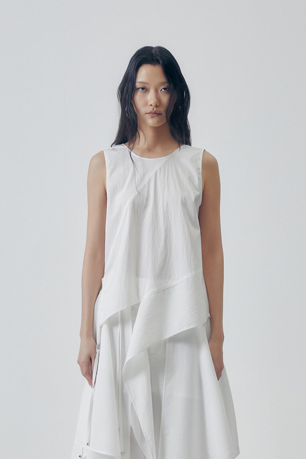 [TREEMINGBIRD] Asymmetric Draped Sleeveless Top [ White ]